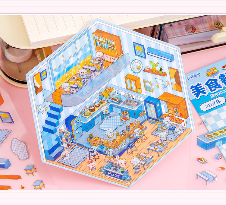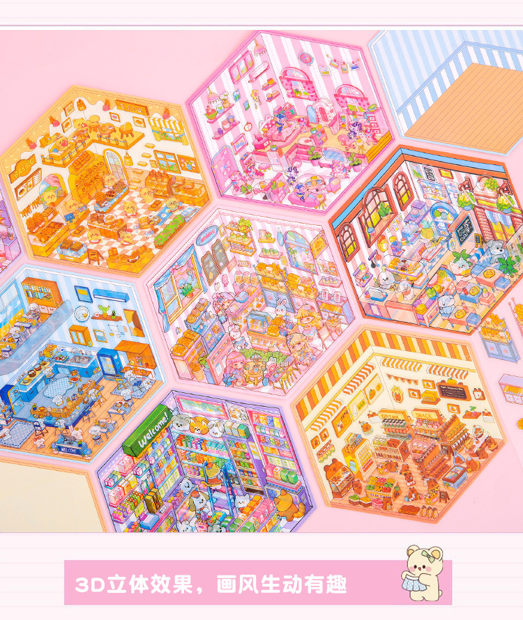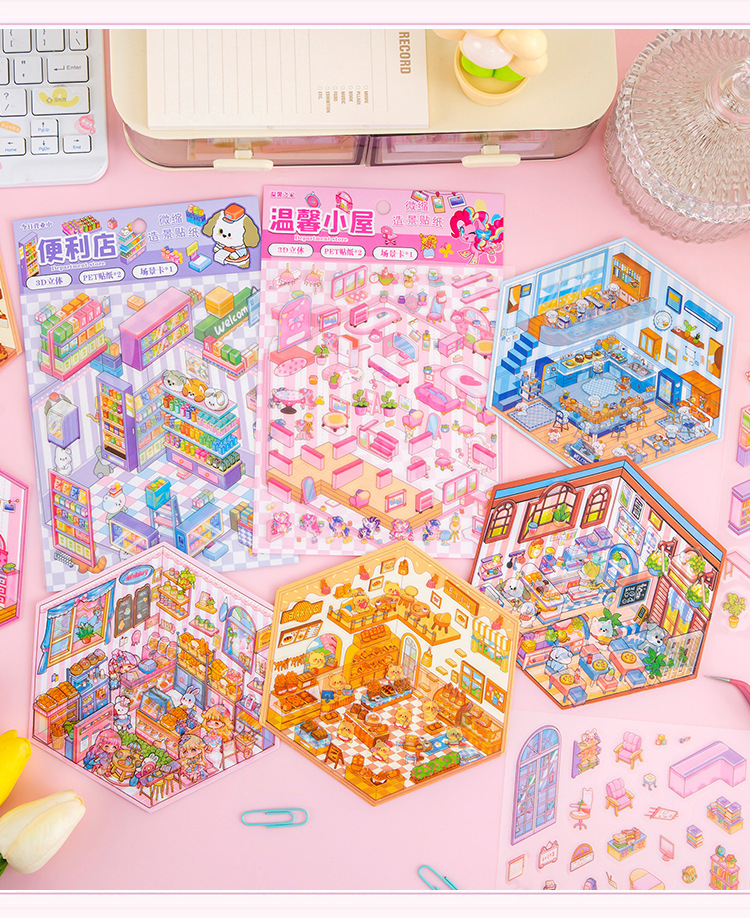 만화 미니어처 장면 컬렉션이 조경 스티커 3 차원 오두막 소녀 어린이 장난감 DIY 손 계정 스티커스토어 가기