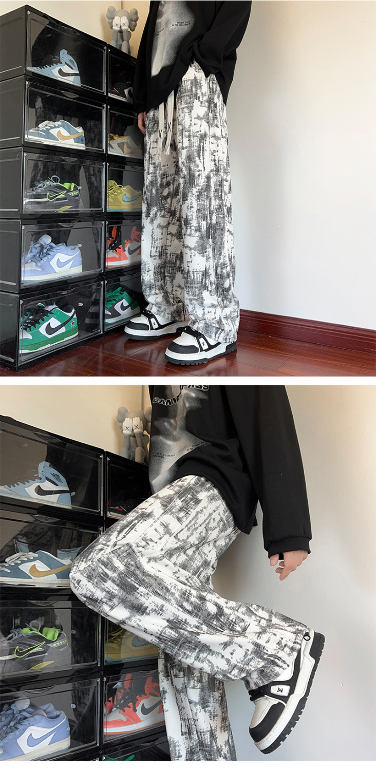 2025 틈새 타이-염료 담그는 바지 남자 봄과 가을 미국 스타일 올 매치 스웨트 팬츠 십대 하이 스트리트 바지스토어 가기