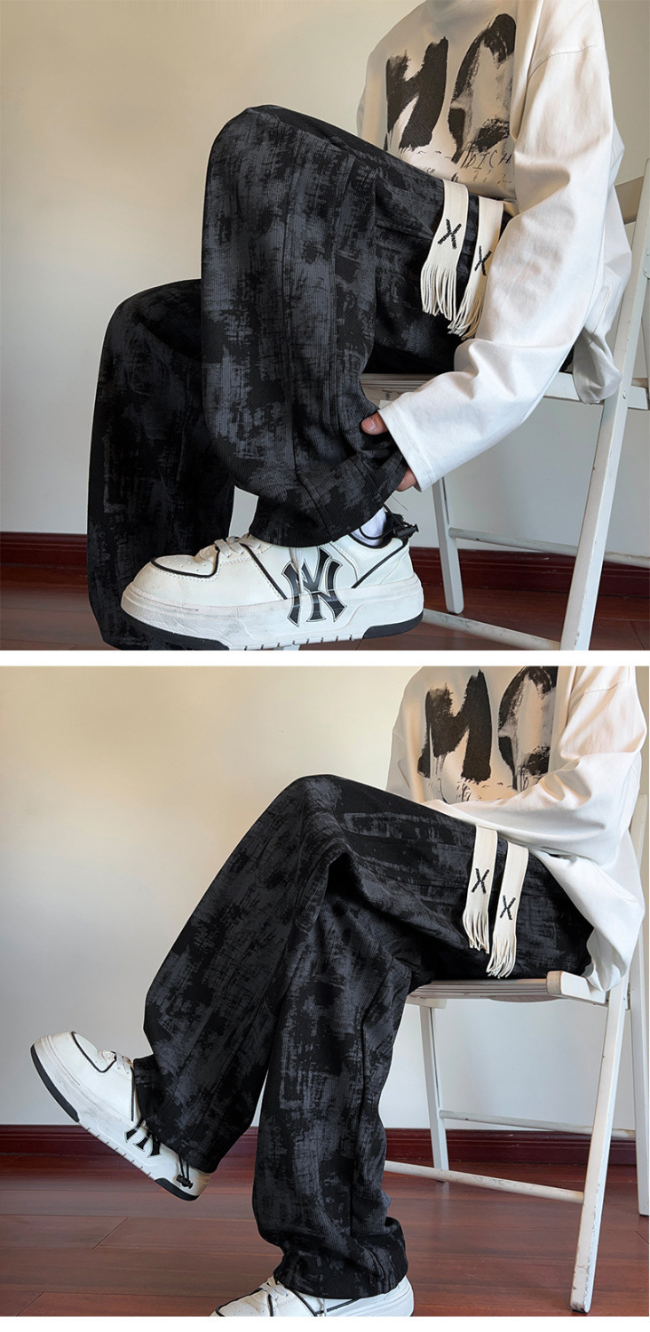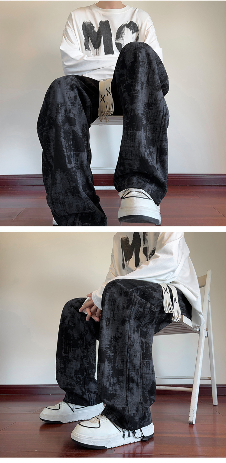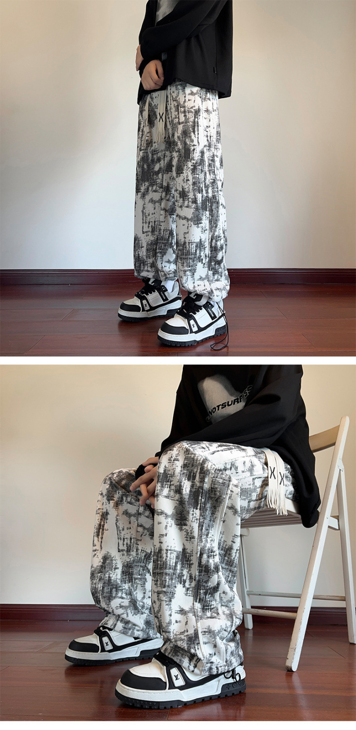 2025 틈새 타이-염료 담그는 바지 남자 봄과 가을 미국 스타일 올 매치 스웨트 팬츠 십대 하이 스트리트 바지