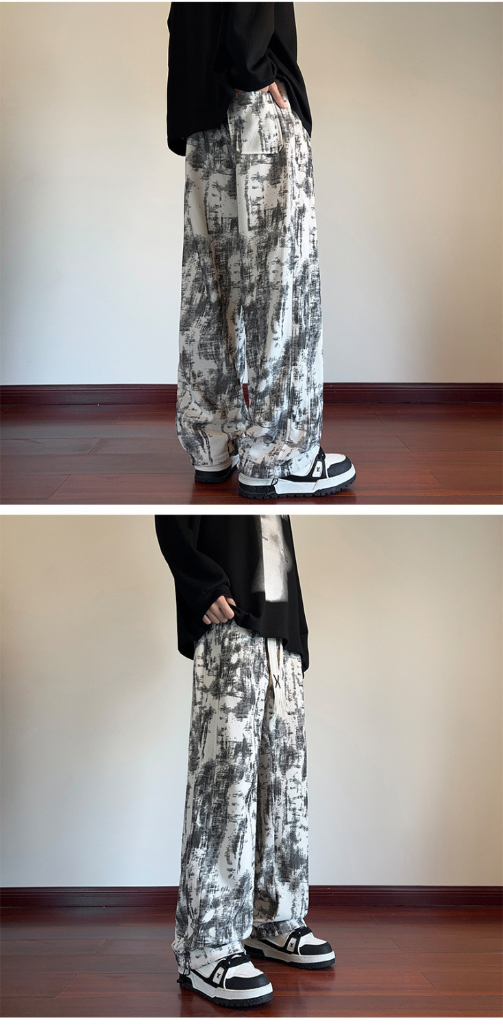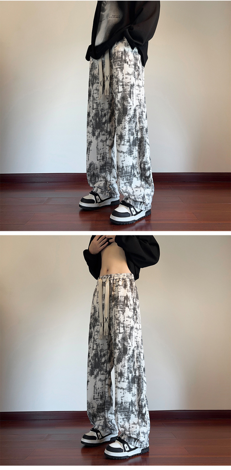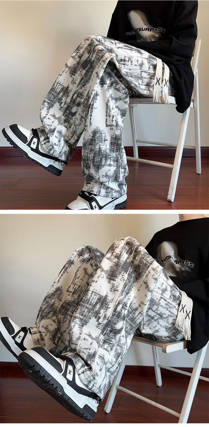 2025 틈새 타이-염료 담그는 바지 남자 봄과 가을 미국 스타일 올 매치 스웨트 팬츠 십대 하이 스트리트 바지