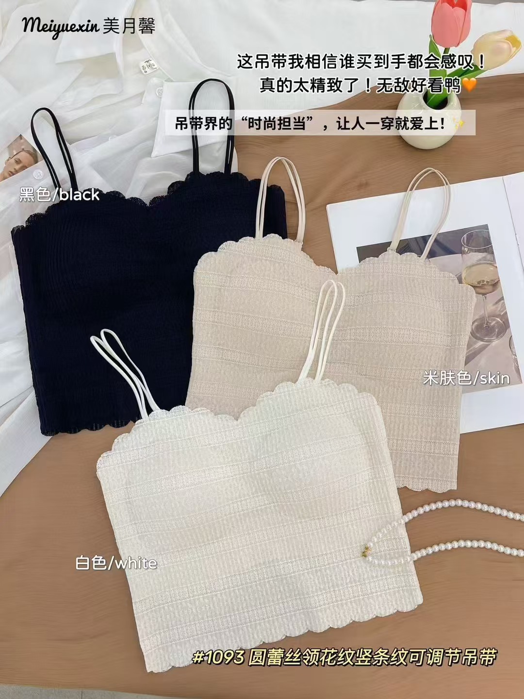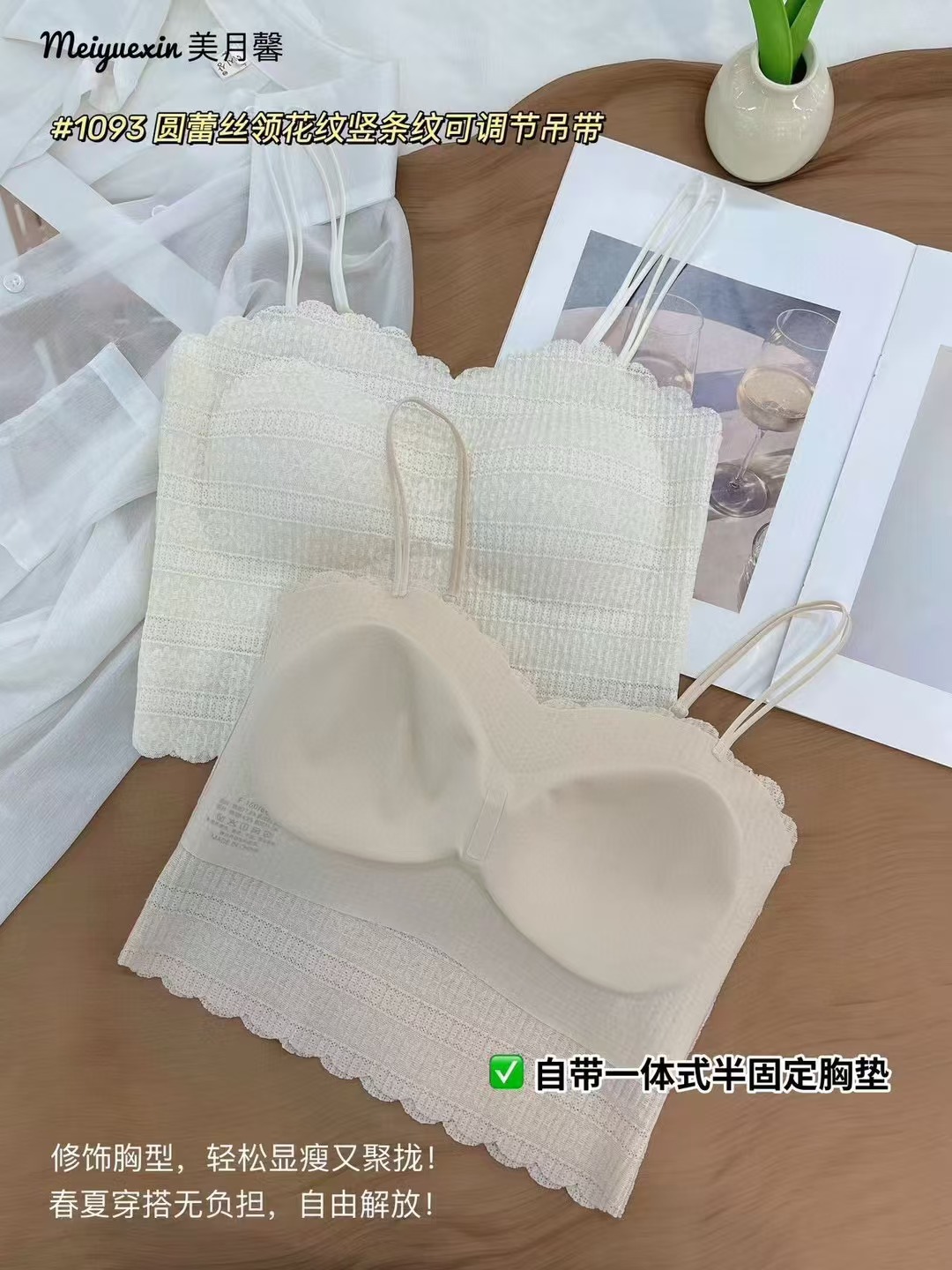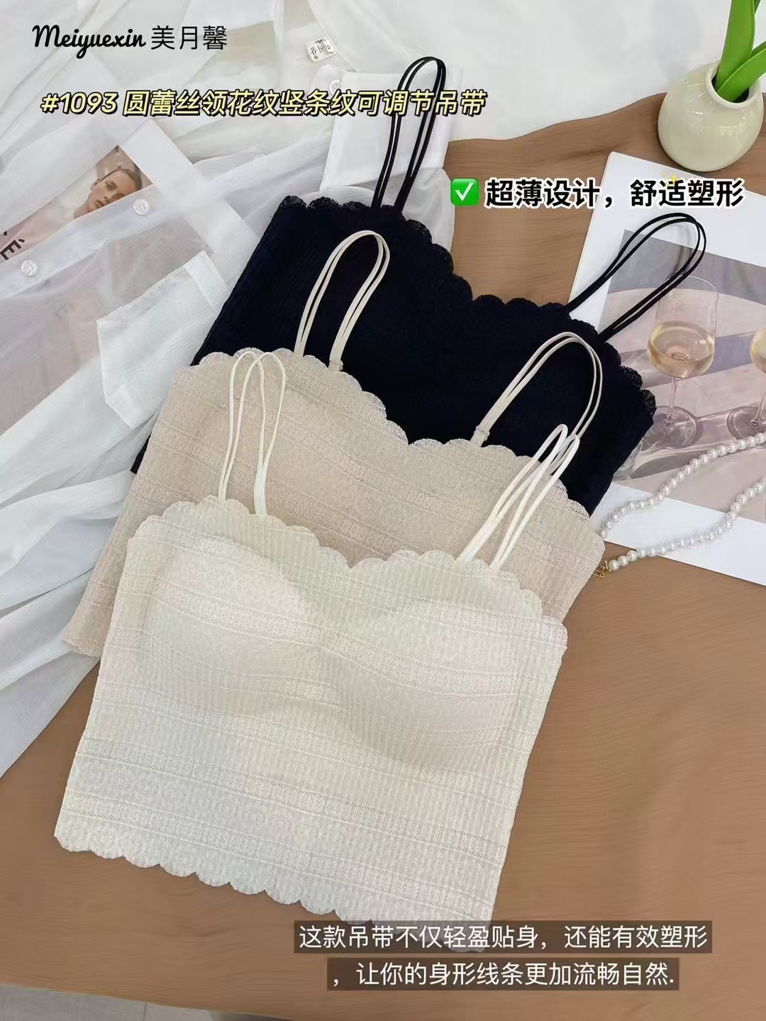 1093 프랑스 스타일 레이스 고정 컵 작은 슬링 긴 조끼 여성의 봄과 가을 간단한 내부 착용 슬링 조끼스토어 가기
