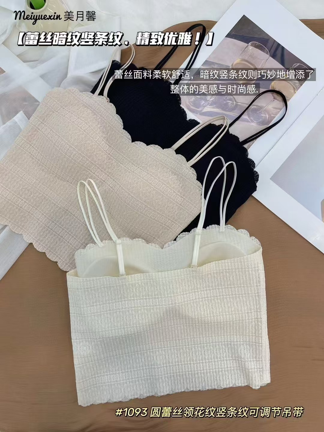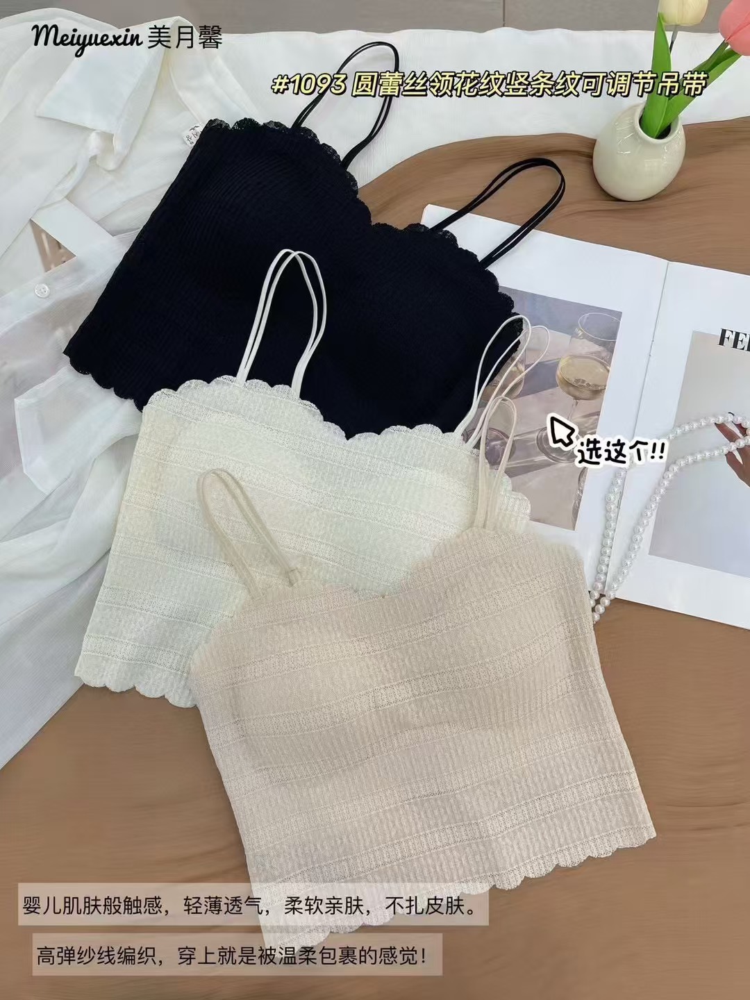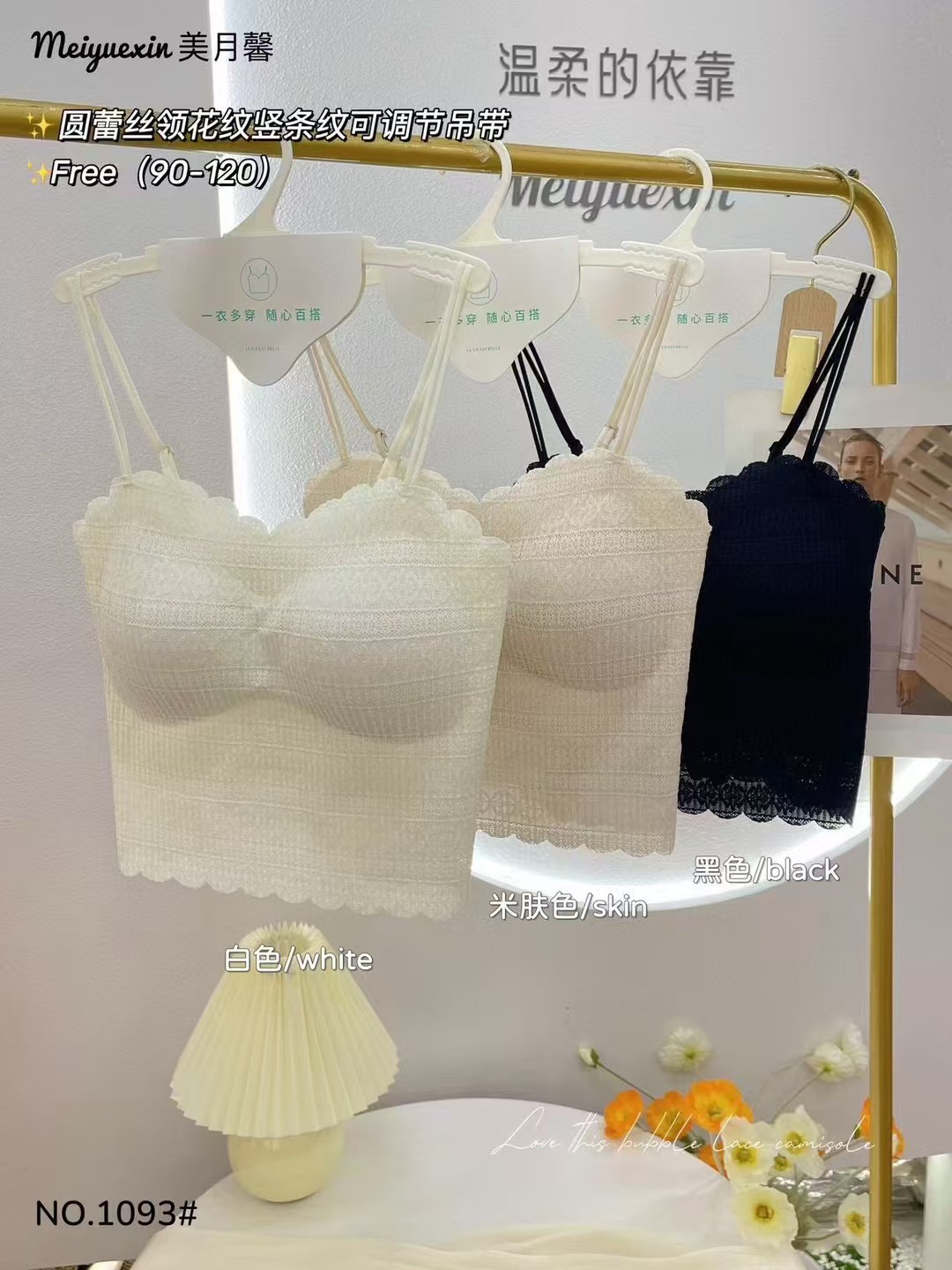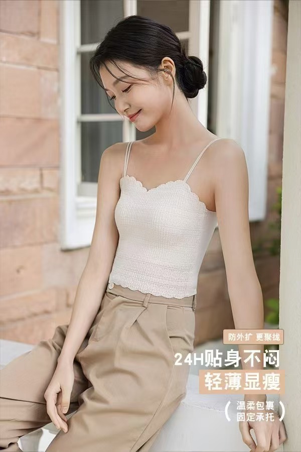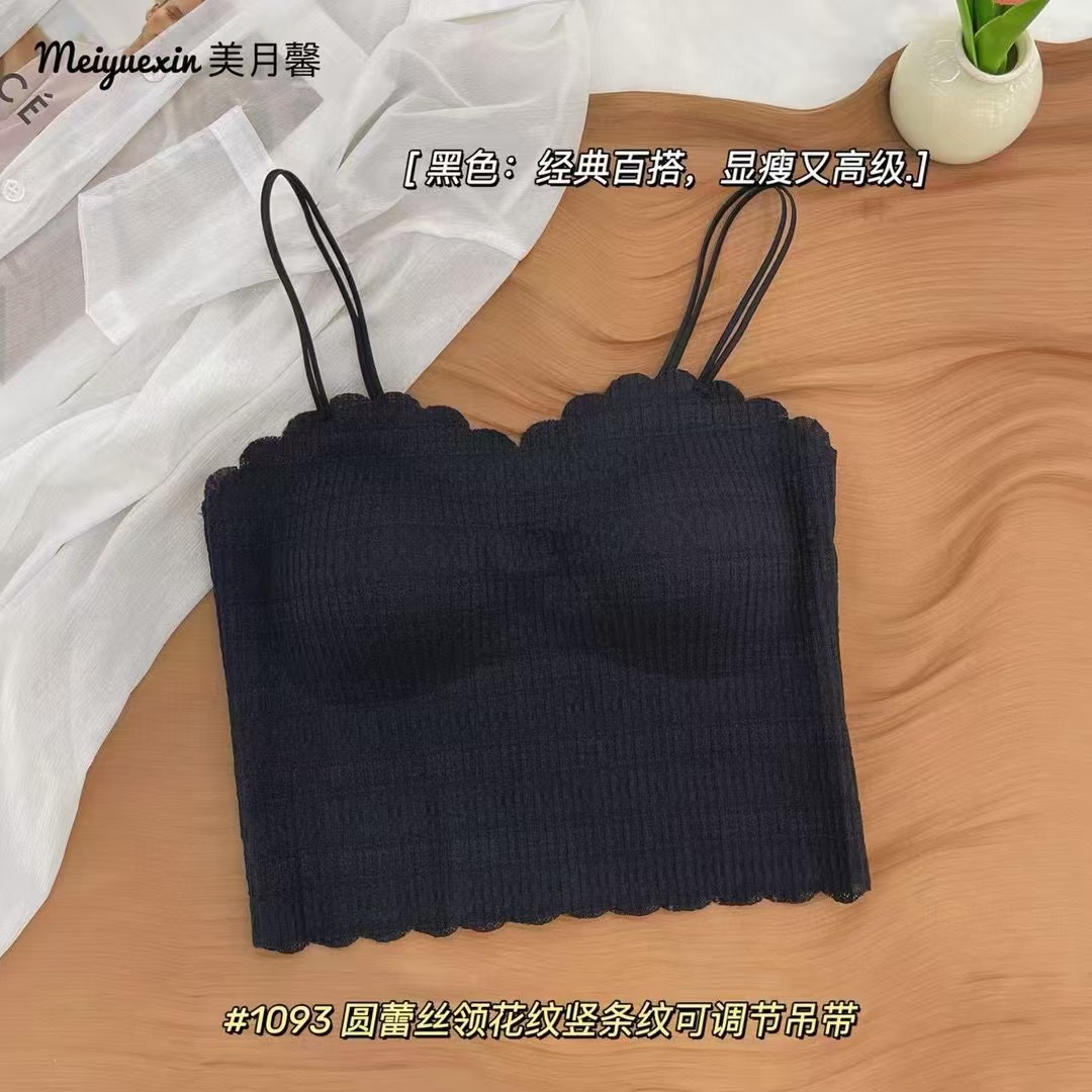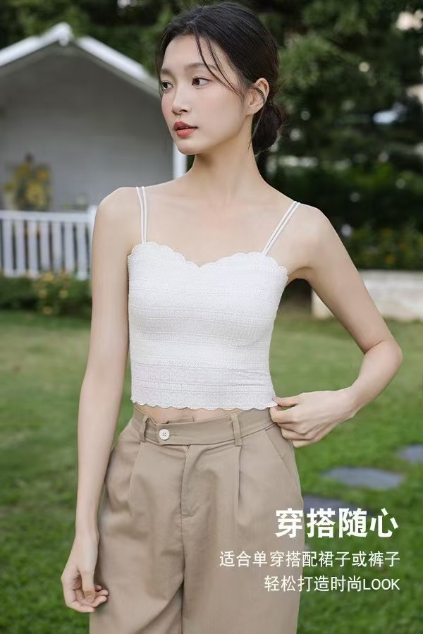 1093 프랑스 스타일 레이스 고정 컵 작은 슬링 긴 조끼 여성의 봄과 가을 간단한 내부 착용 슬링 조끼