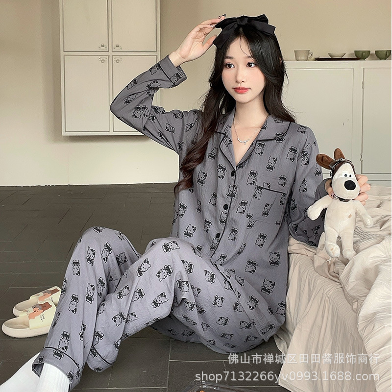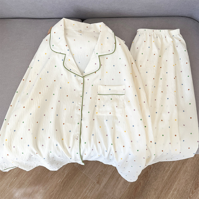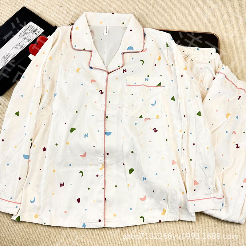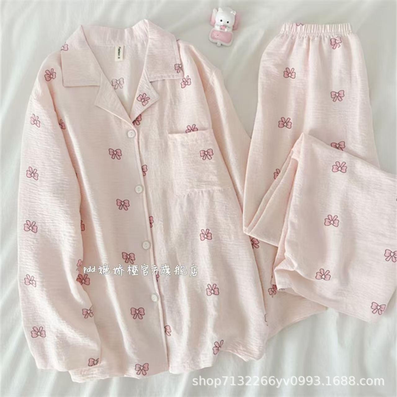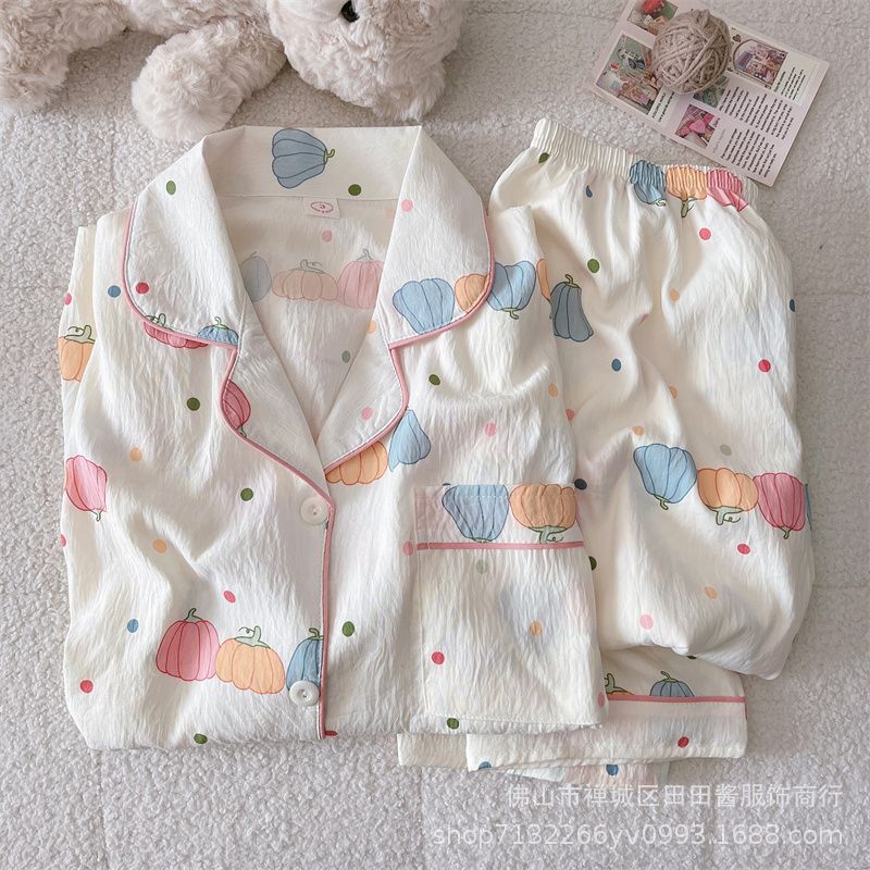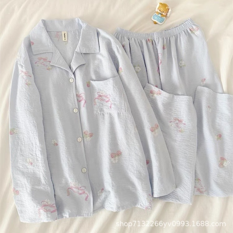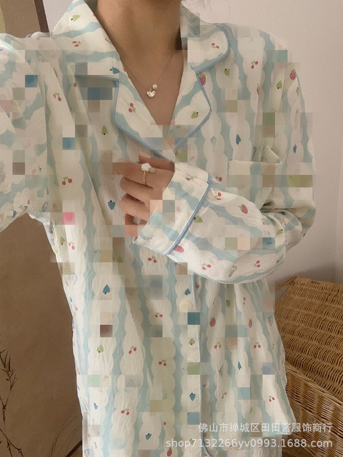 봄과 가을 긴 소매 파자마 여성 구름 코튼 주름진 천 달콤한 Ins 공주 스타일 일본 스타일 신선한 스타일 홈 의류 세트스토어 가기