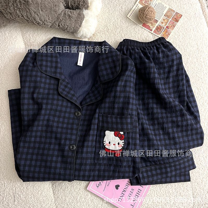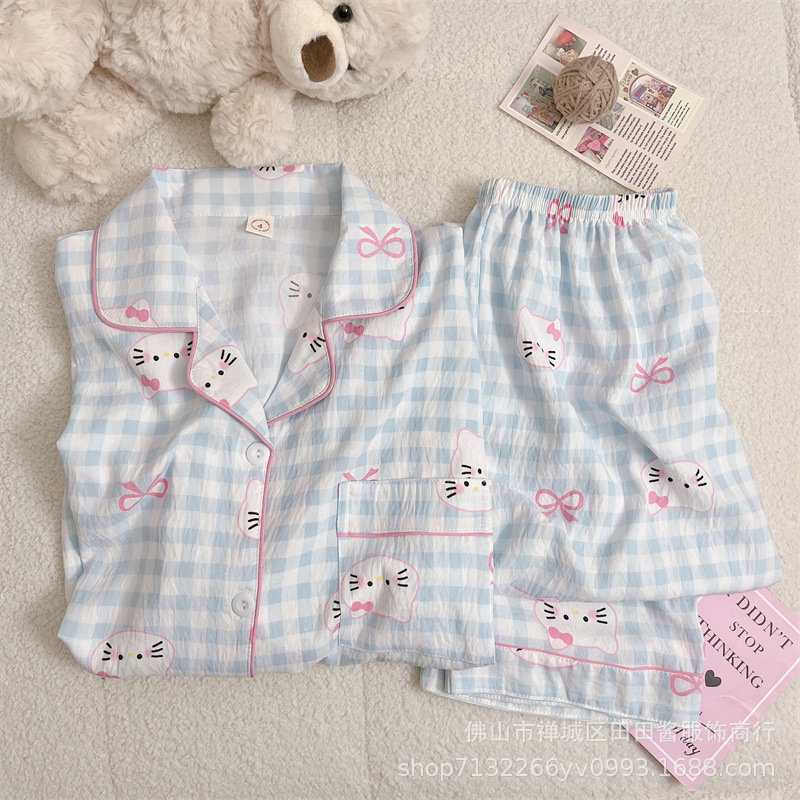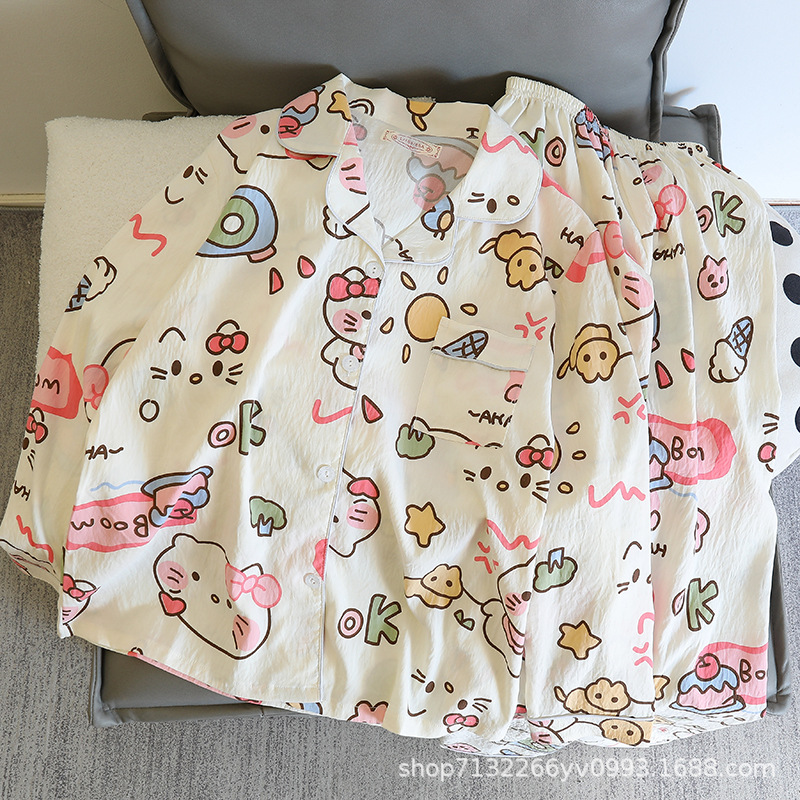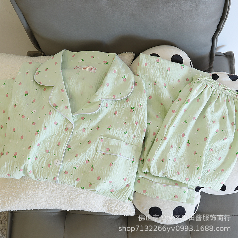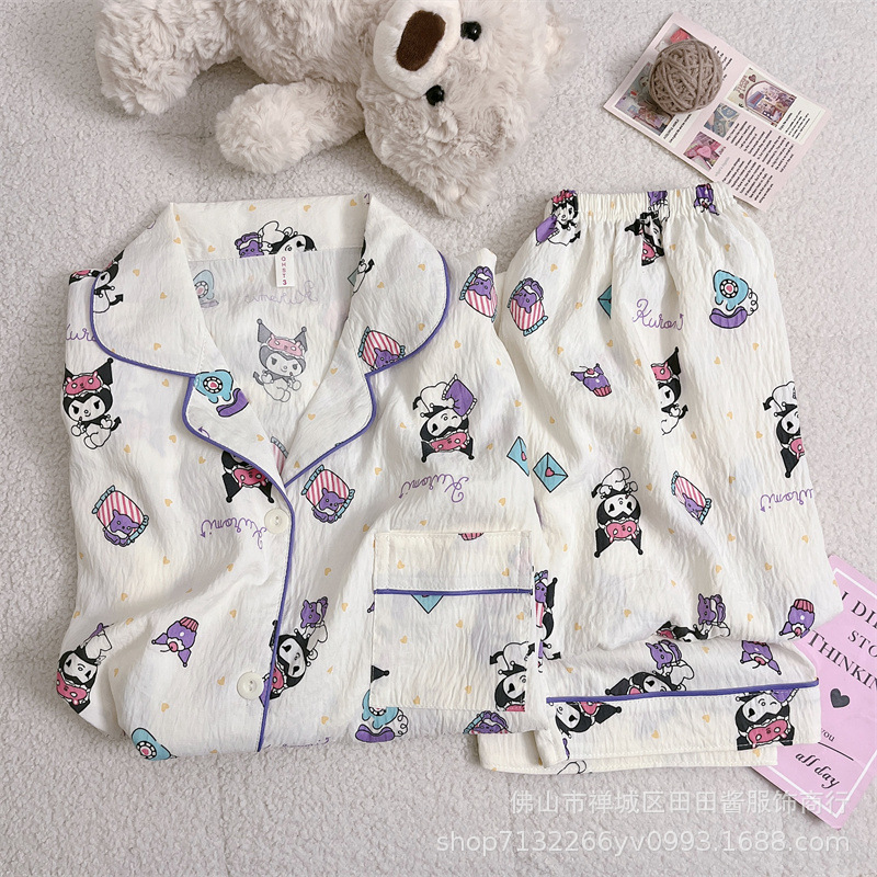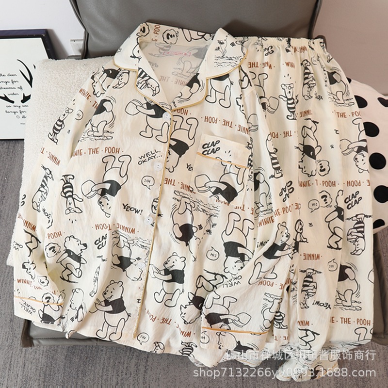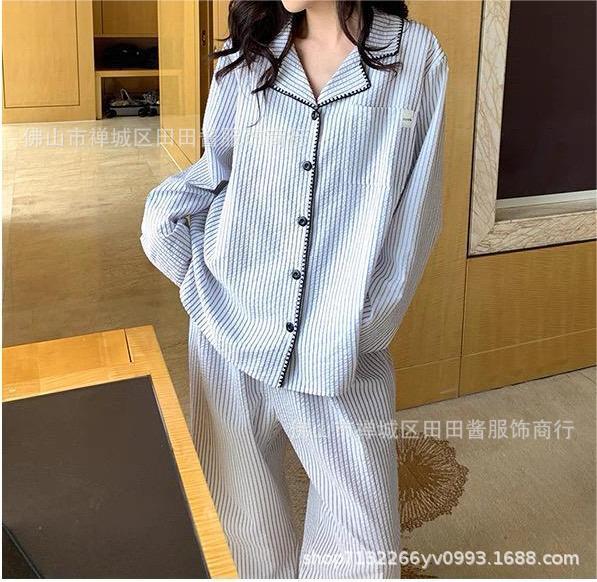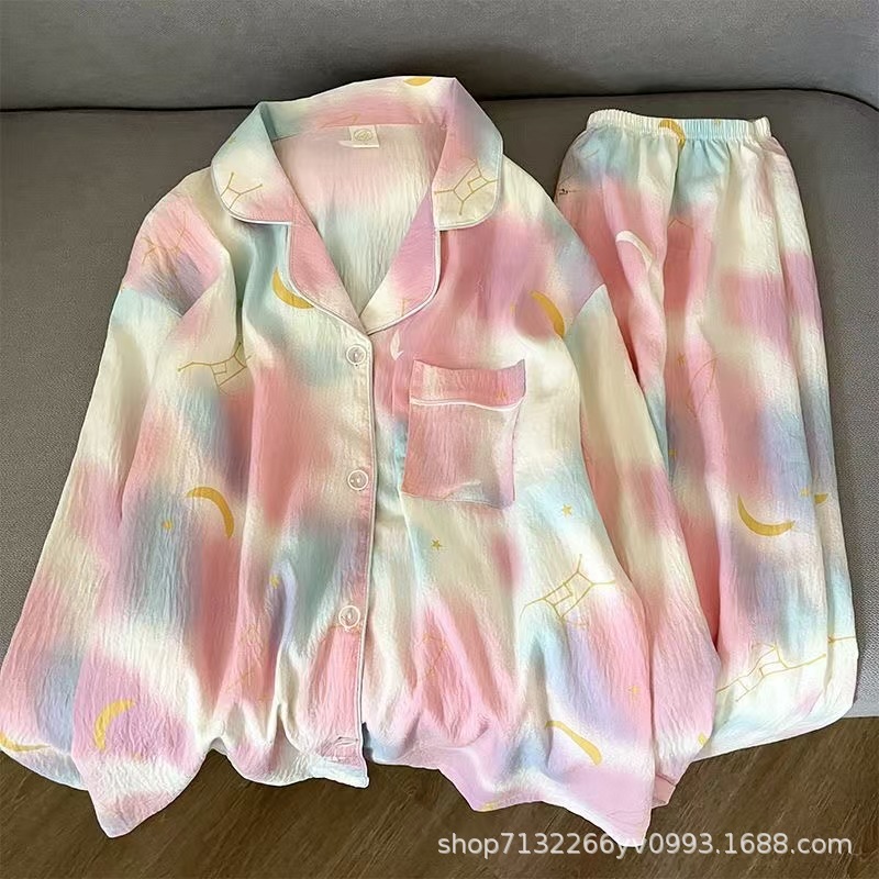 봄과 가을 긴 소매 파자마 여성 구름 코튼 주름진 천 달콤한 Ins 공주 스타일 일본 스타일 신선한 스타일 홈 의류 세트스토어 가기