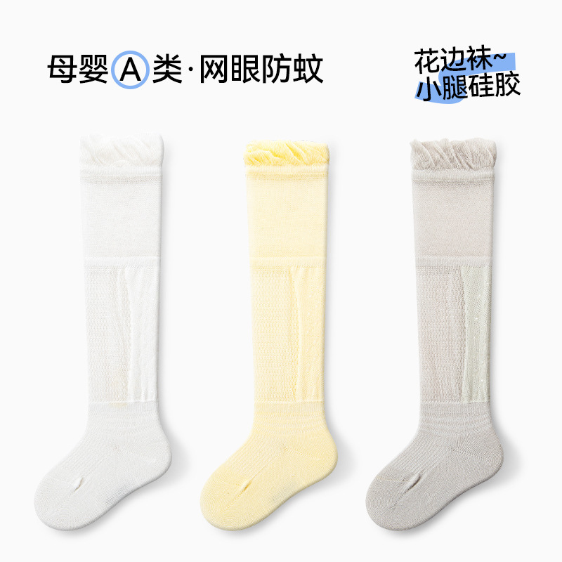 아기의 여름 얇은 무릎 스타킹 뼈없는 모기 방지 양말 미끄럼 방지 바닥 양말 신생아 아기 양말 유아 양말