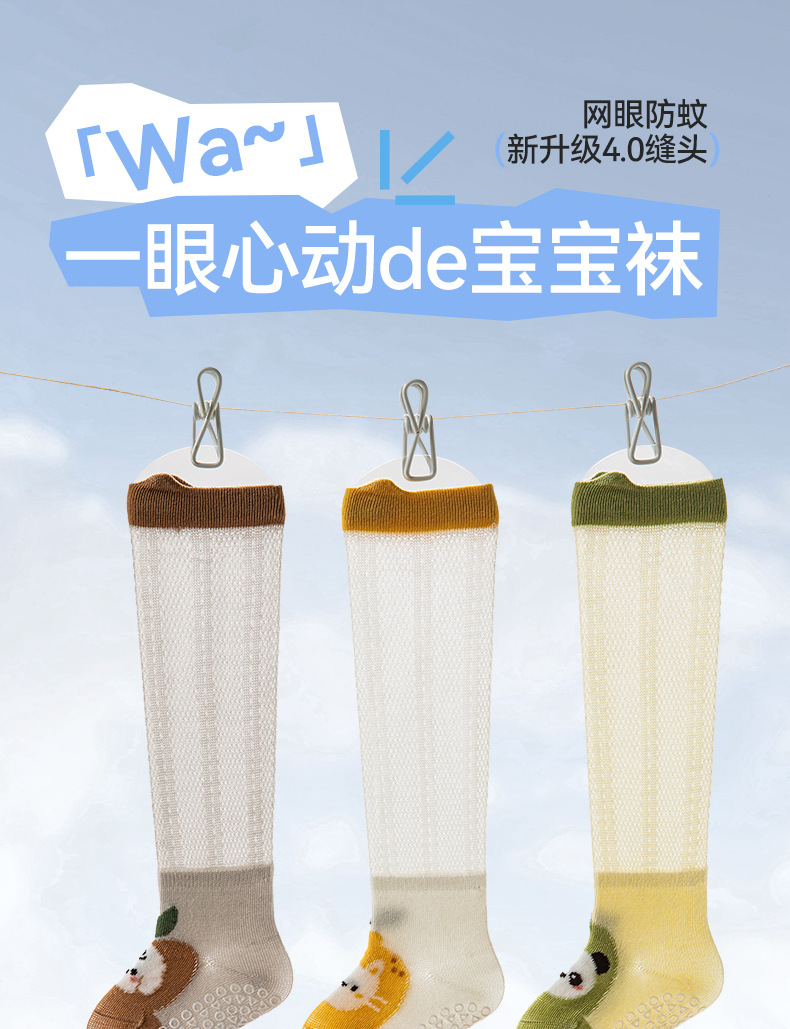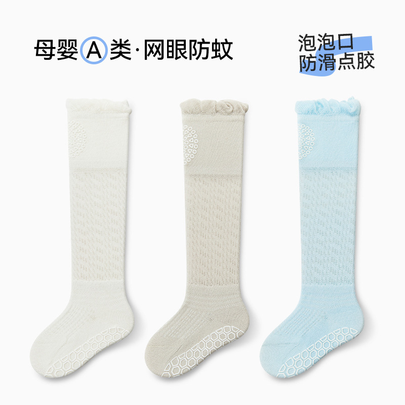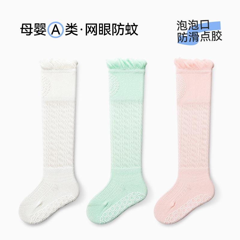 아기의 여름 얇은 무릎 스타킹 뼈없는 모기 방지 양말 미끄럼 방지 바닥 양말 신생아 아기 양말 유아 양말스토어 가기