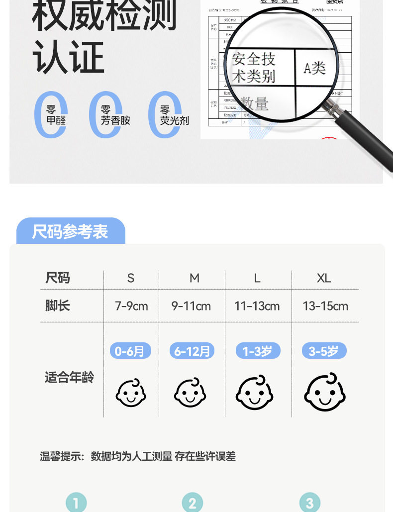• L 사이즈(발 길이 11-13cm에 적합) 1-3세