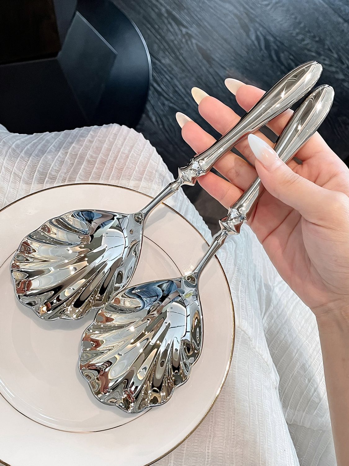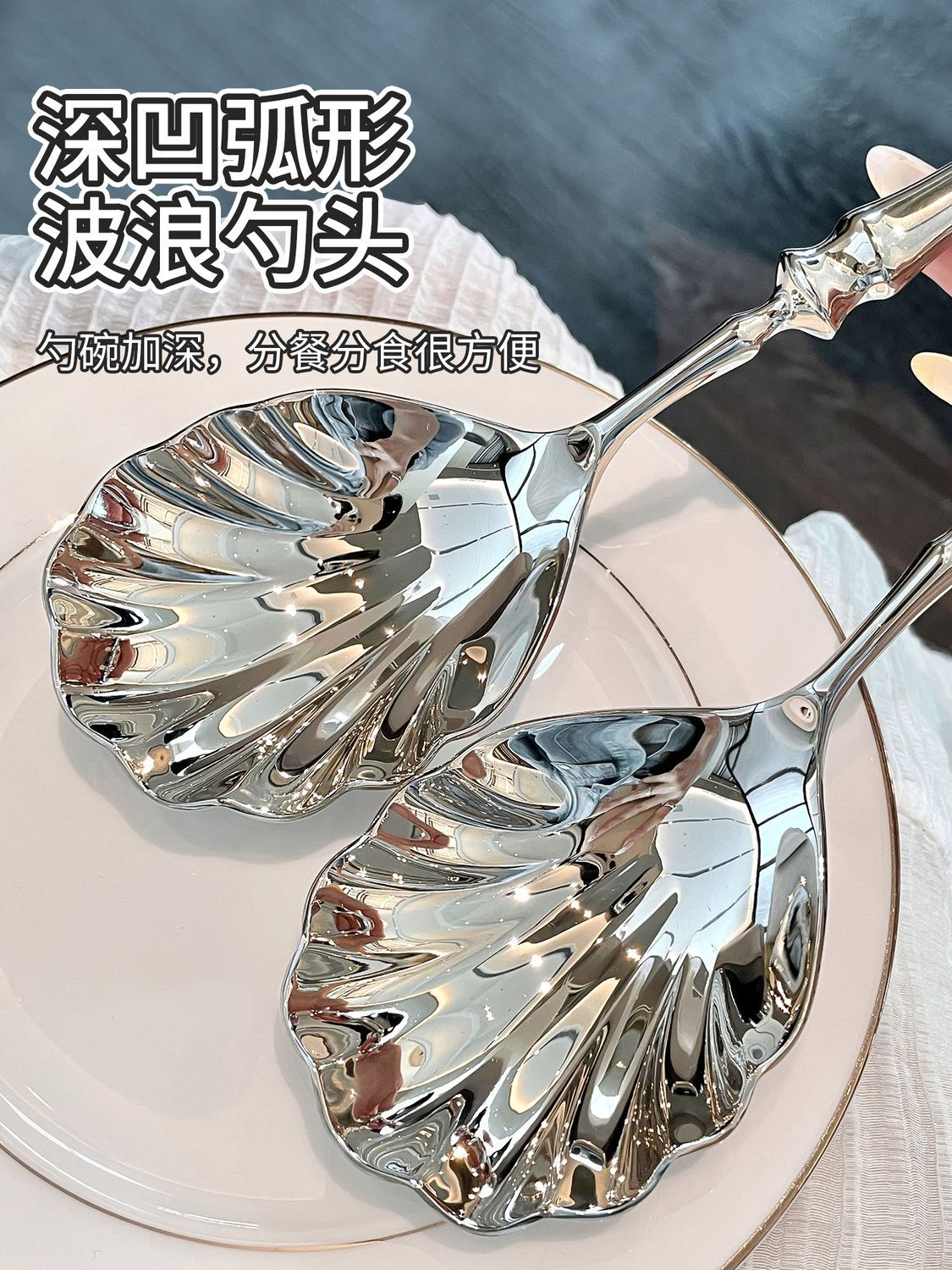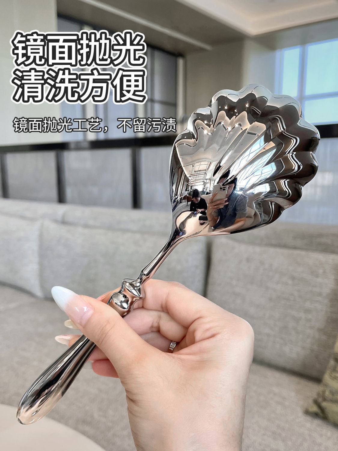 304 스테인레스 스틸 크리 커빗 핸들 쉘 스푼 레스토랑 호텔 식사 공공 스푼 수프 가정용 혼합 스푼스토어 가기