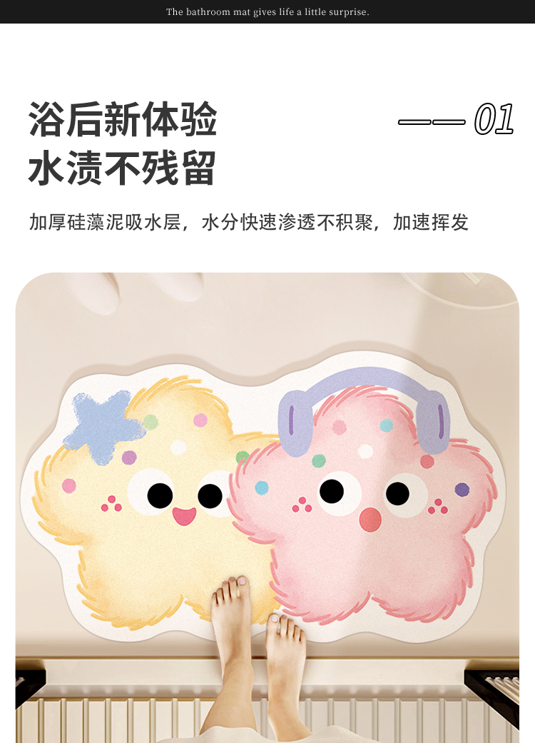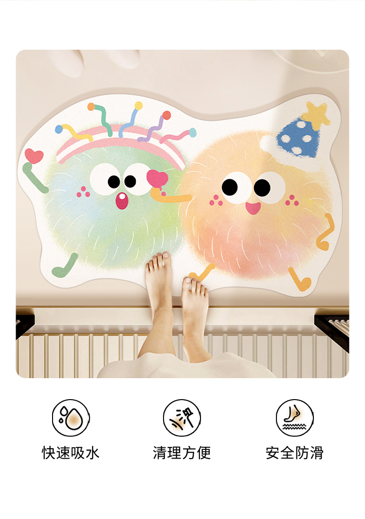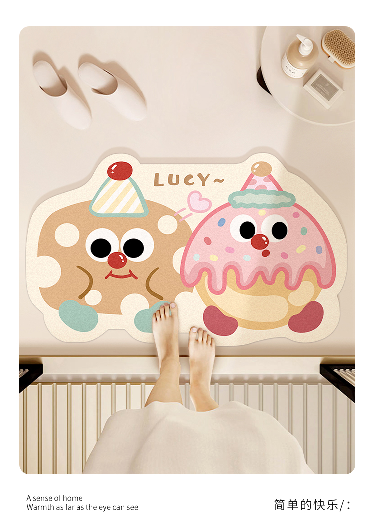 만화 욕실 흡수성 바닥 매트 재미있는 욕실 도어 Diatom 진흙 미끄럼 방지 발 매트 가정용 화장실 빠른 건조 카펫