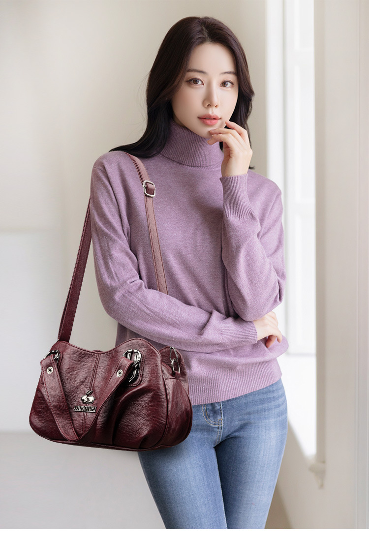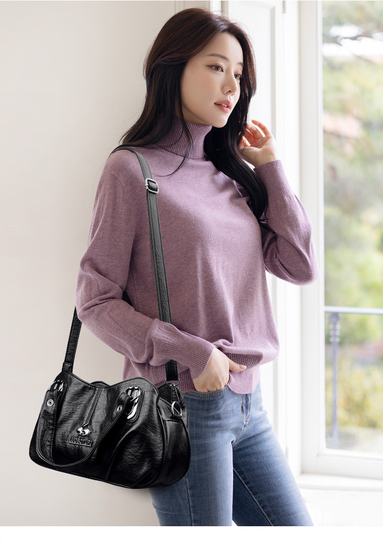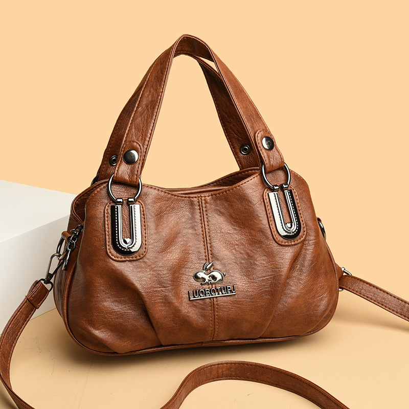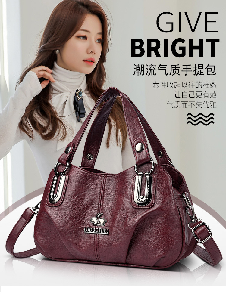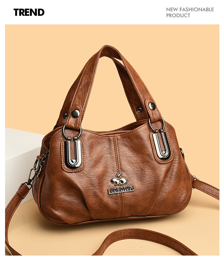 새로운 여성 가방 올매치 패션 소프트 가죽 여성용 어깨 크로스 바디 백 트렌디 한 대용량 중년 어머니 핸드백 Satchel