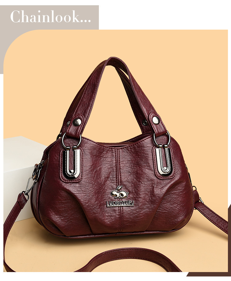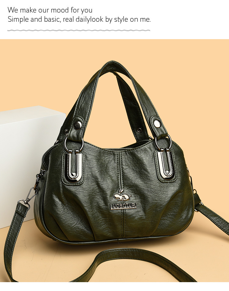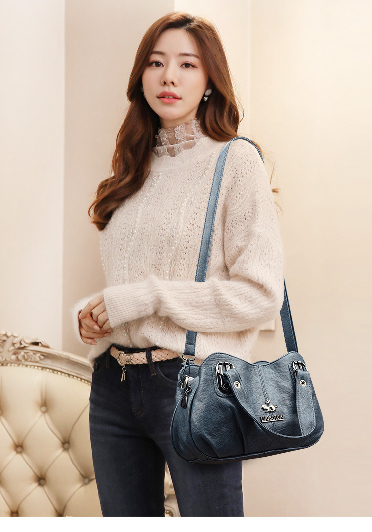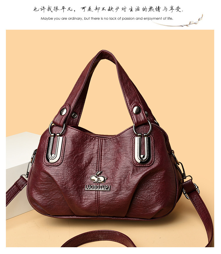 새로운 여성 가방 올매치 패션 소프트 가죽 여성용 어깨 크로스 바디 백 트렌디 한 대용량 중년 어머니 핸드백 Satchel