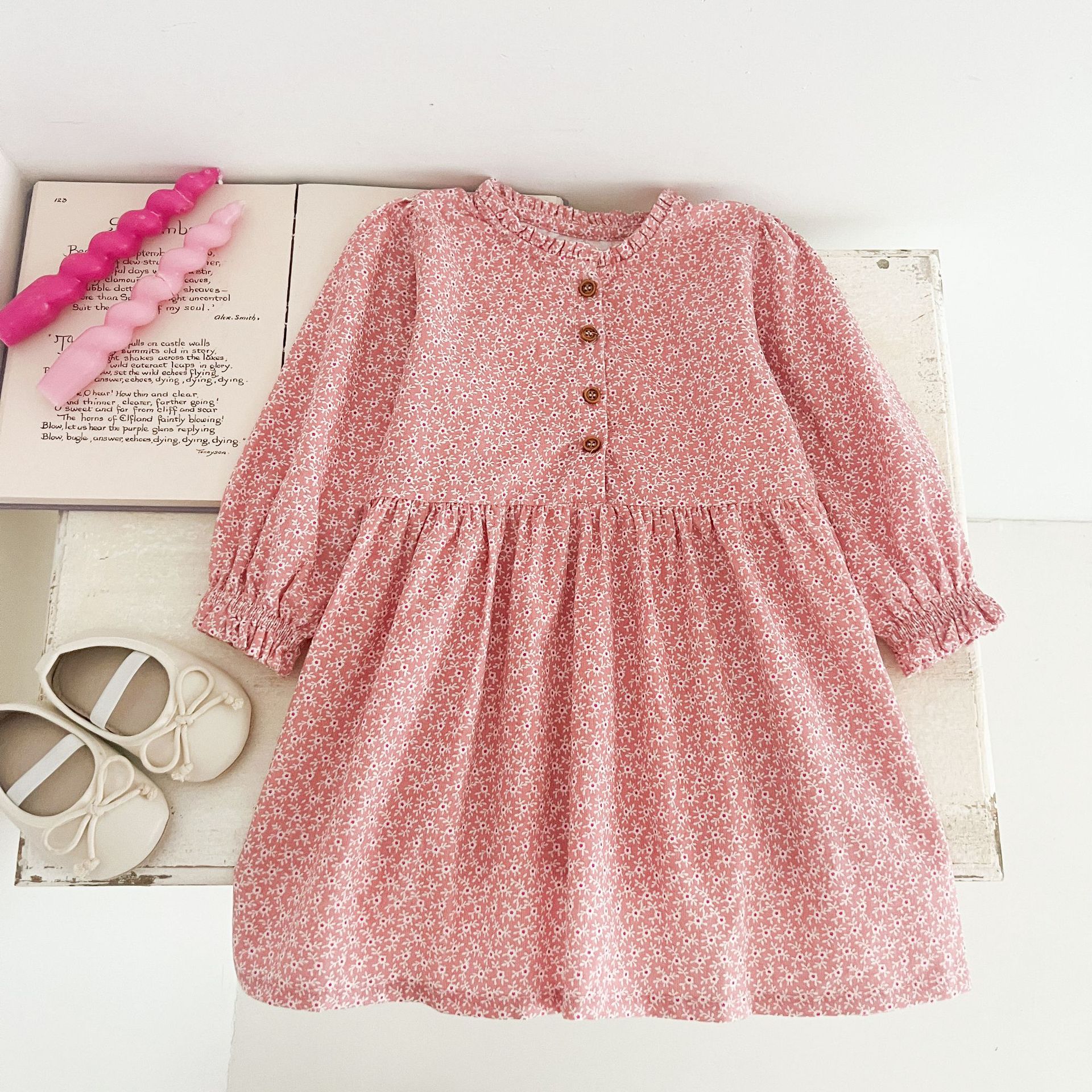 여아 드레스, 봄 가을 아동 스커트, 유럽과 미국의 새로운 긴팔 아동용 꽃무늬 공주 드레스