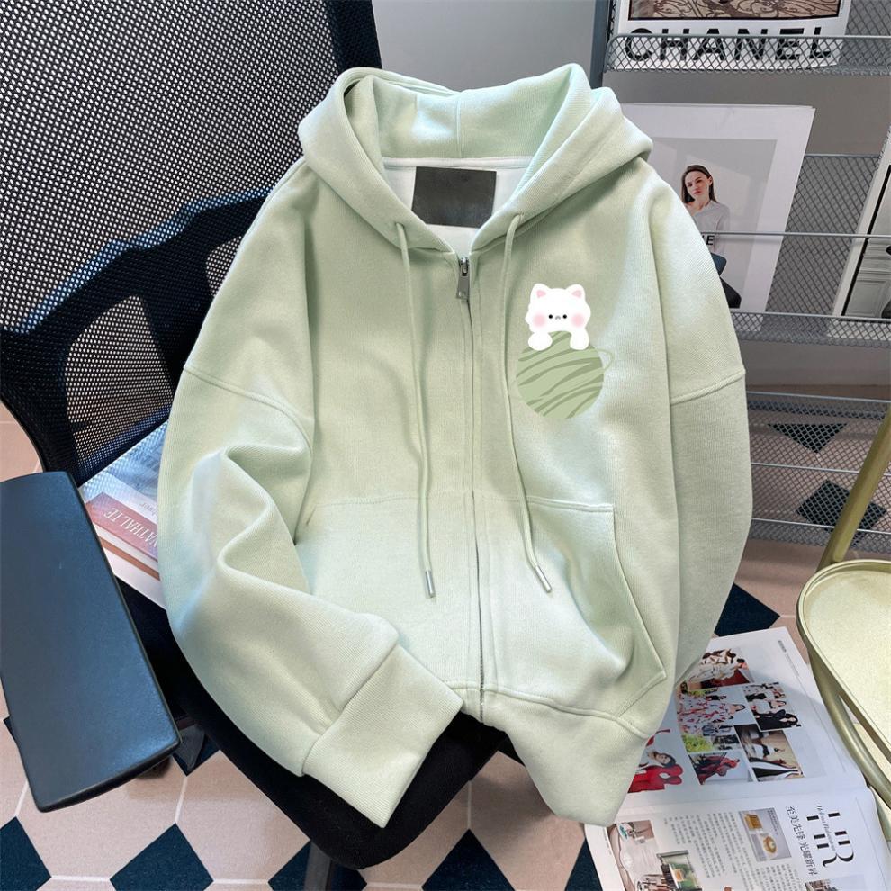 A6Chiphop 미국식 후드 카디건 스웨터 코트 여성의 가을 2023 년 새로운 폭발 외국식 연령 감소 재킷스토어 가기