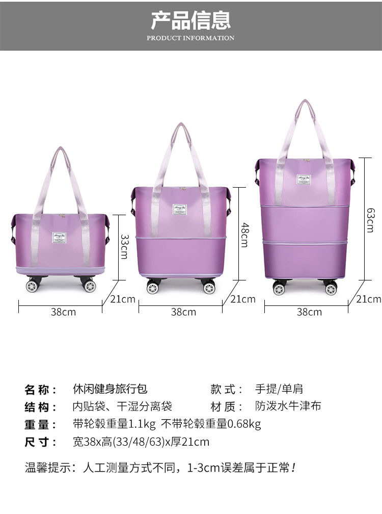 생산을위한 대용량 여행 가방 수하물 가방 휴대용 단거리 유니버설 휠 여행 보관 가방 풀리