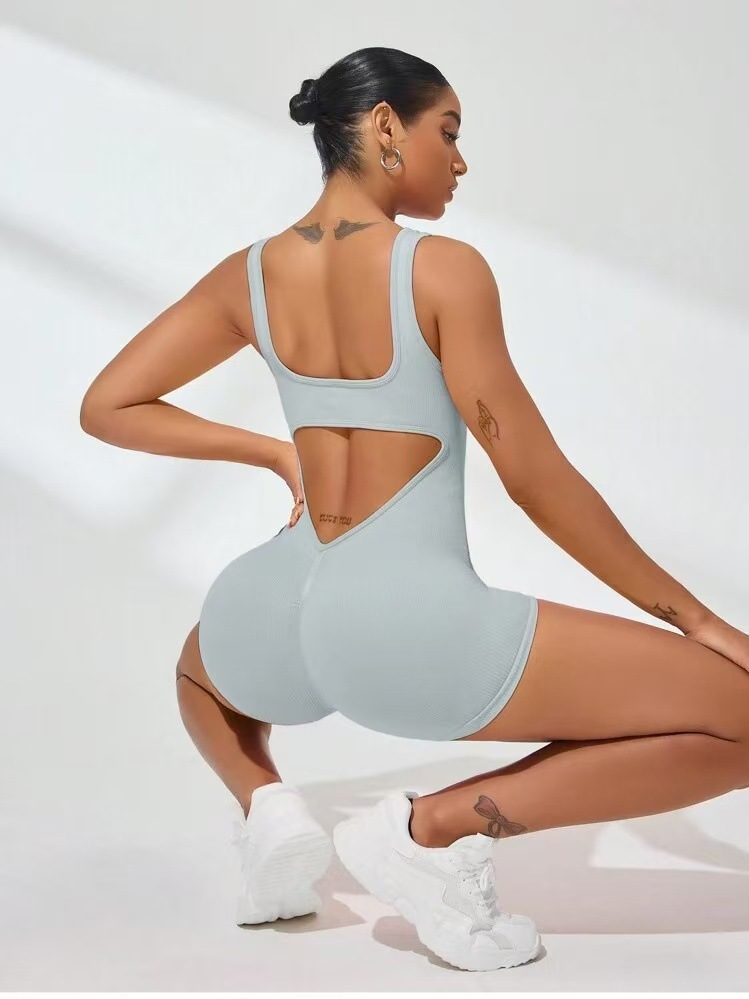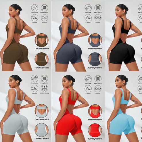 3 색 깃털 복숭아 원활한 요가 점프 수트 없음 가슴 패드 V 허리 피트니스 야외 운동복 여성 요가 점프 수트스토어 가기