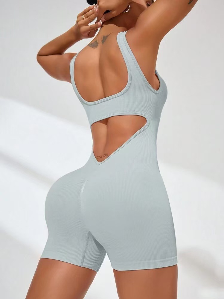 3 색 깃털 복숭아 원활한 요가 점프 수트 없음 가슴 패드 V 허리 피트니스 야외 운동복 여성 요가 점프 수트