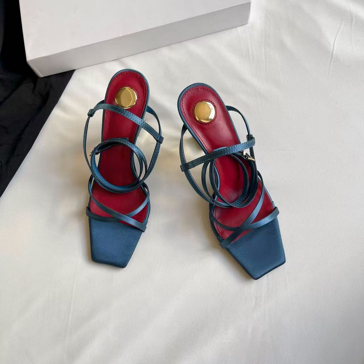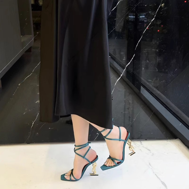 황금 편지 샌들 여자 2025 유럽과 미국의 새로운 스타일 우아한 크로스 오픈 발가락 얇은 뒤꿈치 섹시한 왕실 자매스토어 가기