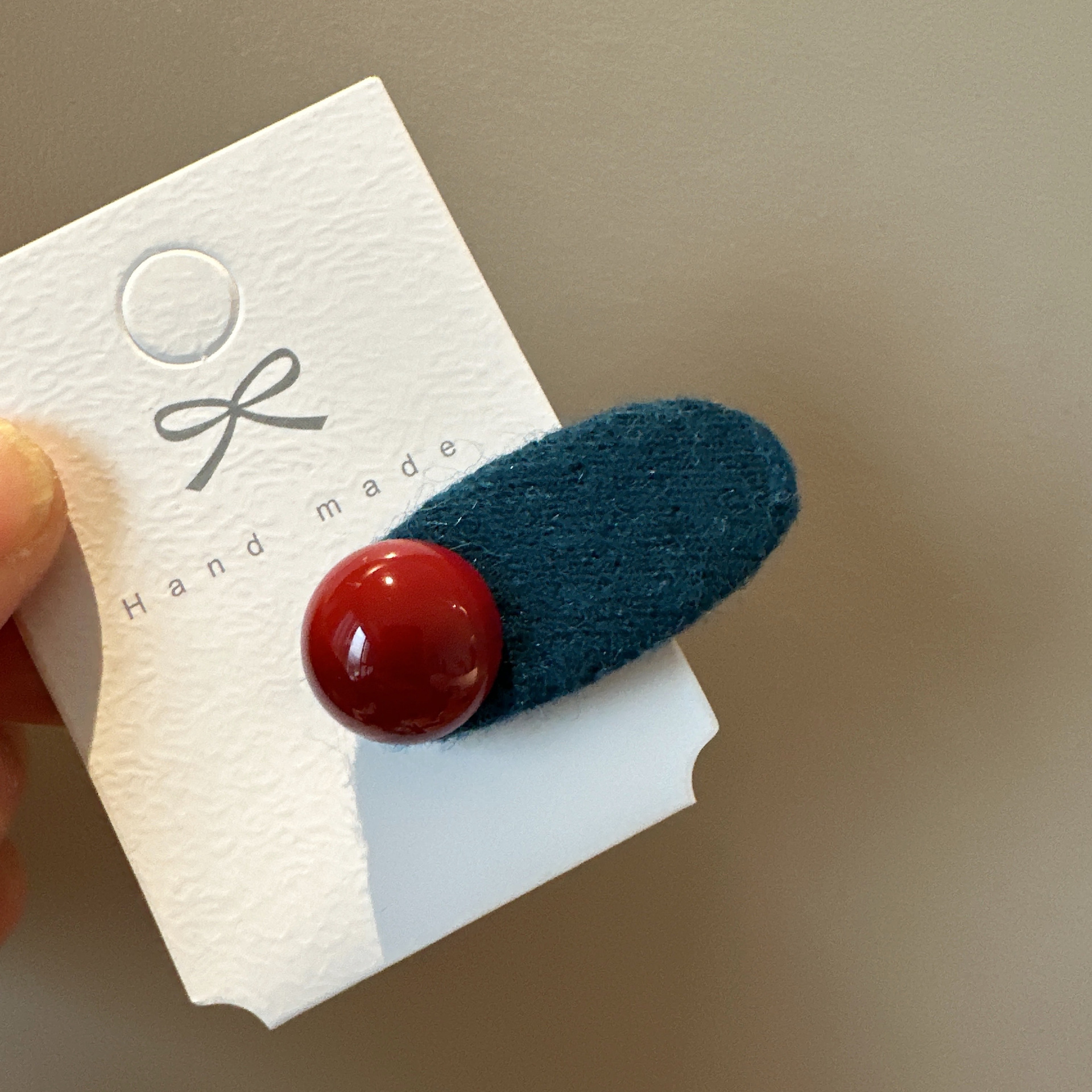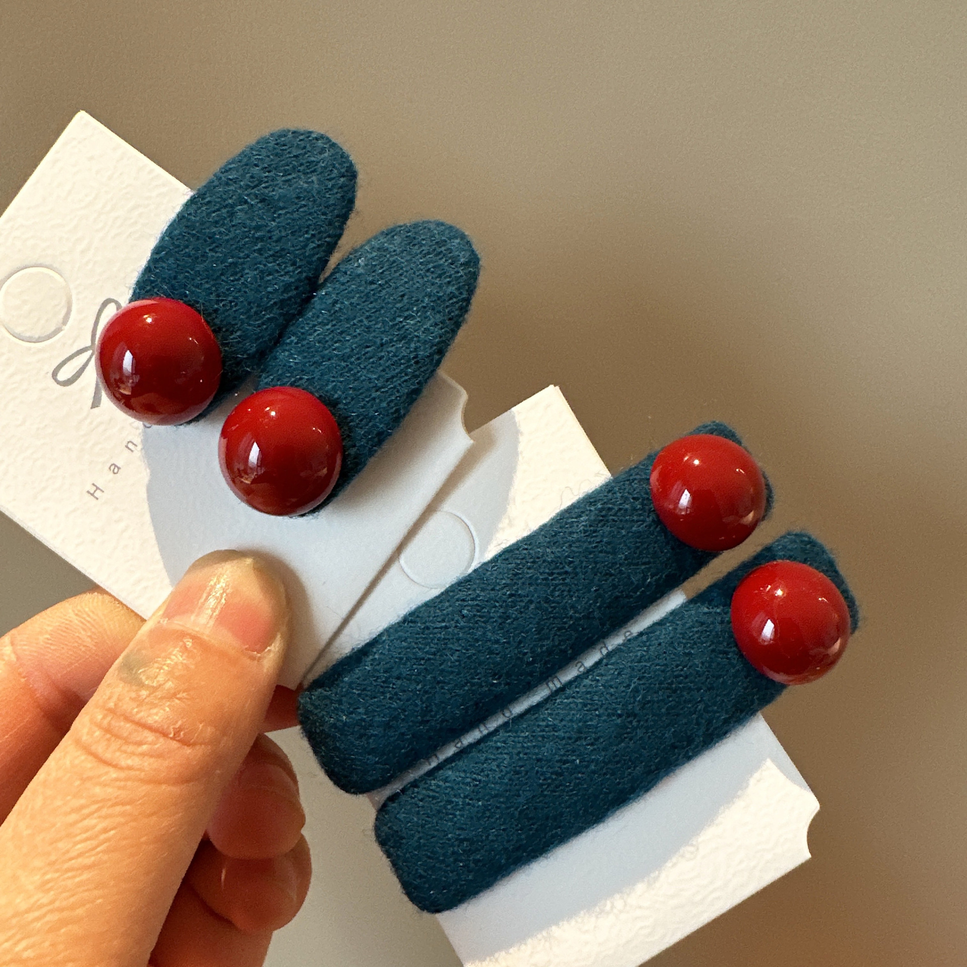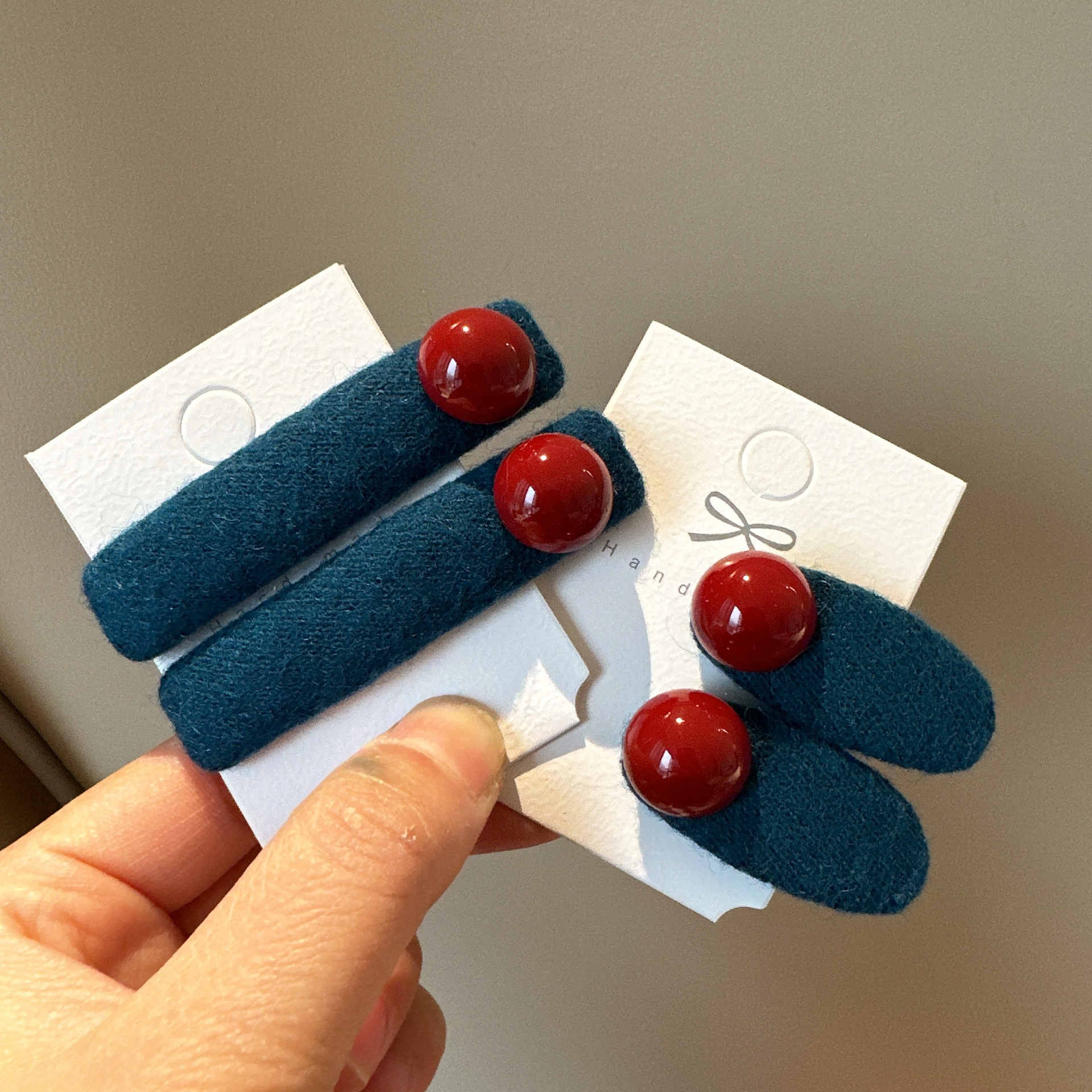 2025 빨간 구슬 푸른 머리핀 틈새 헤어 액세서리 사이드 클립 머리 장식 가을과 겨울 새로운 깨진 머리 앞머리 클립 머리핀