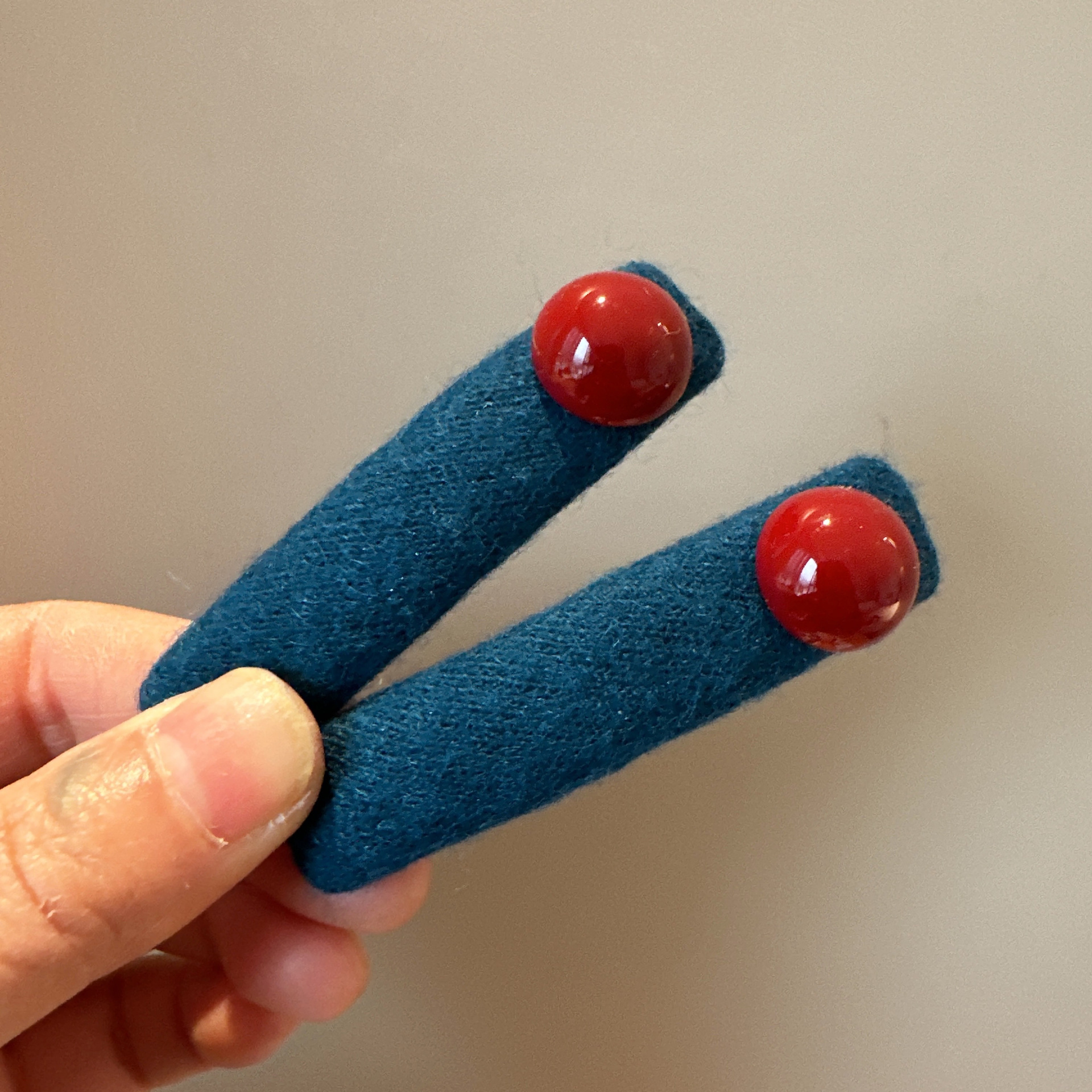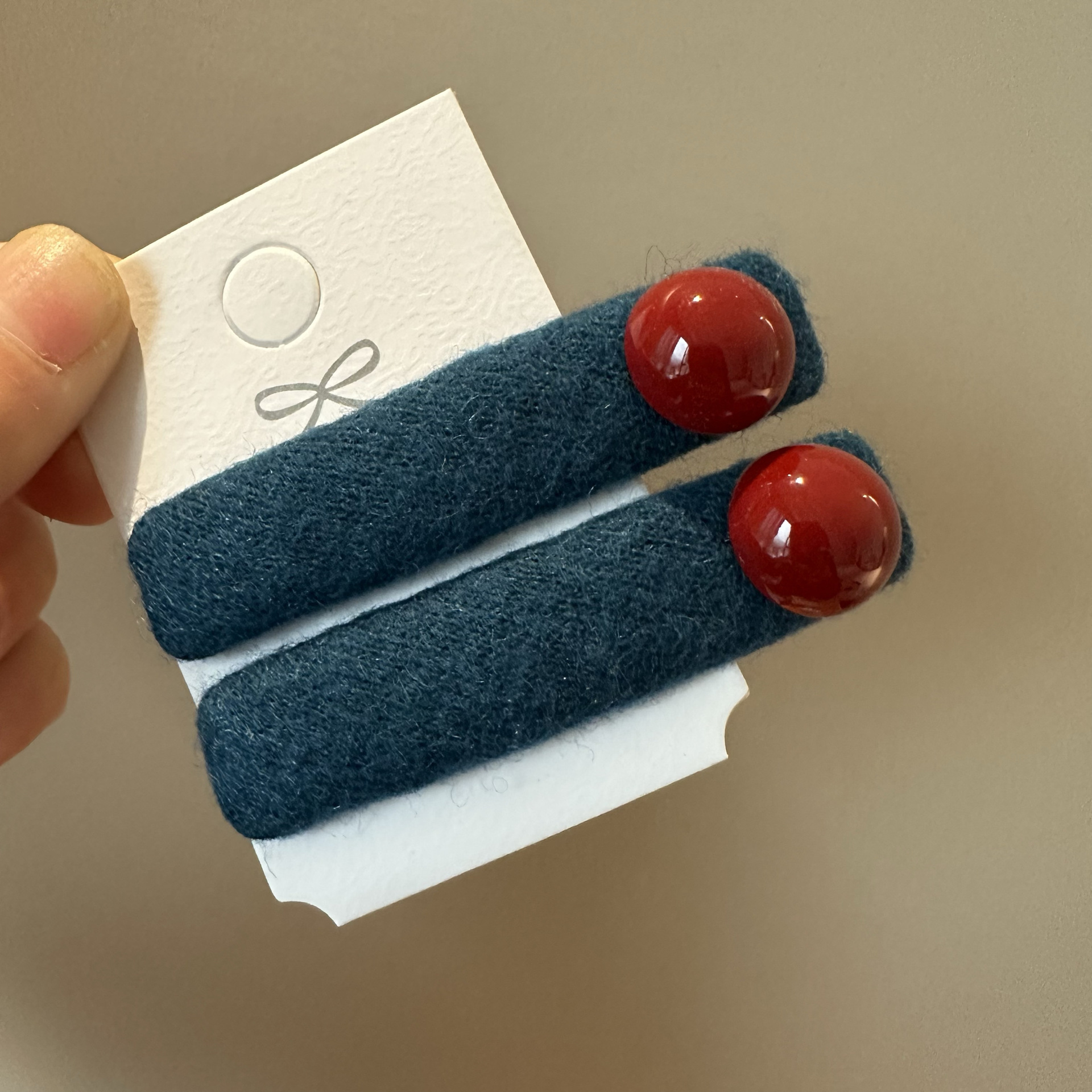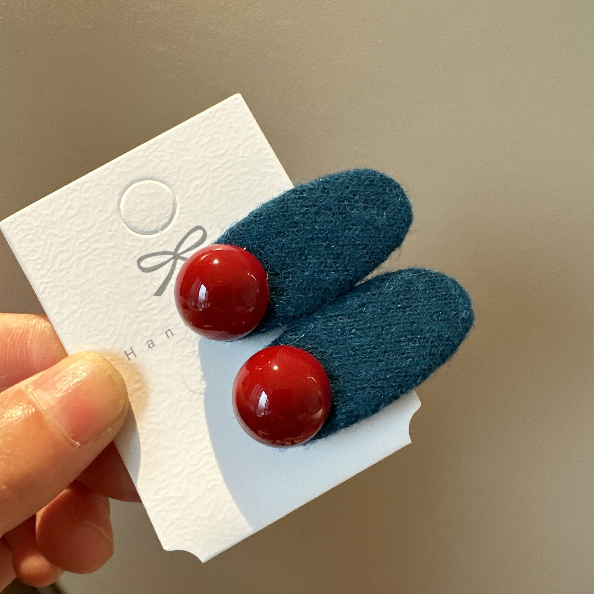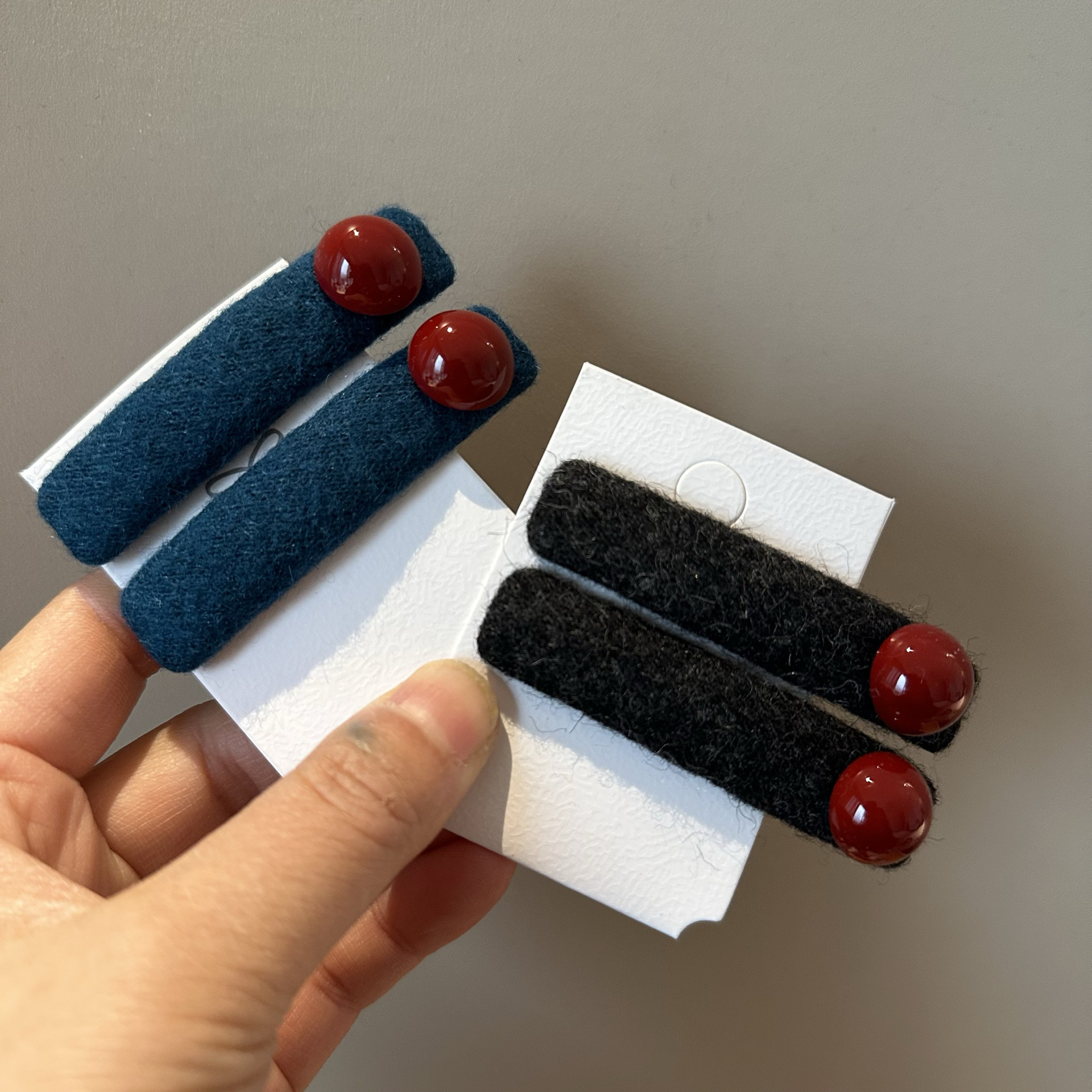 2025 빨간 구슬 푸른 머리핀 틈새 헤어 액세서리 사이드 클립 머리 장식 가을과 겨울 새로운 깨진 머리 앞머리 클립 머리핀