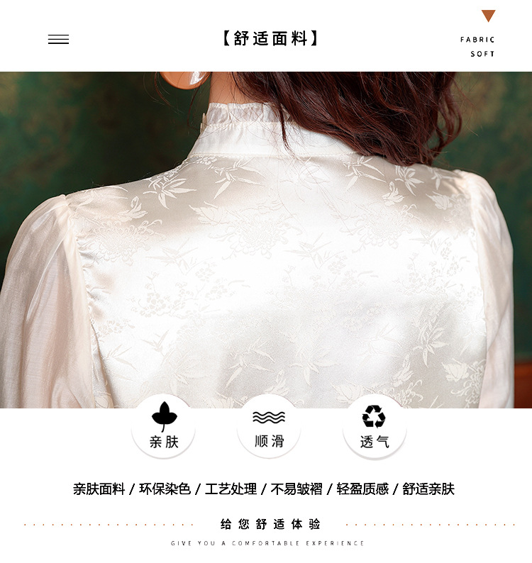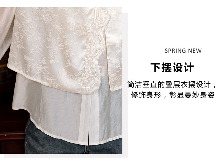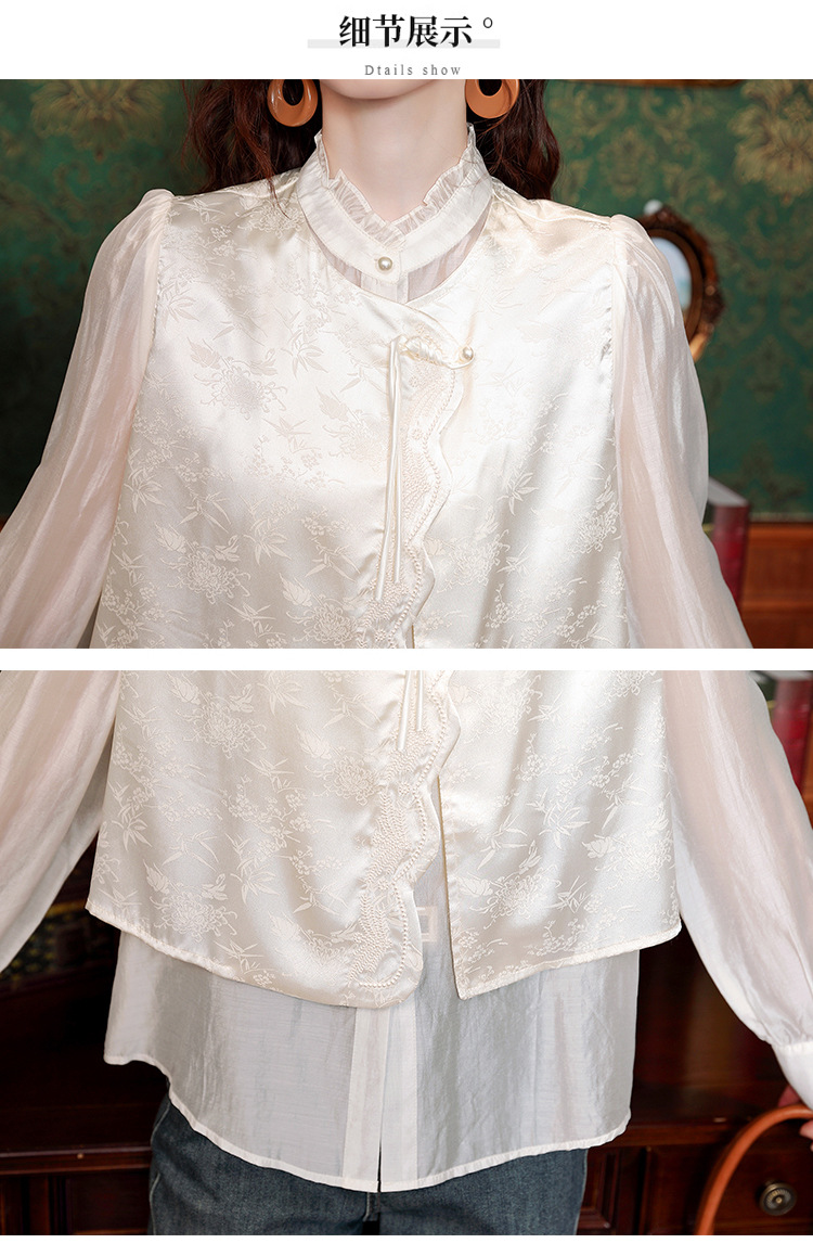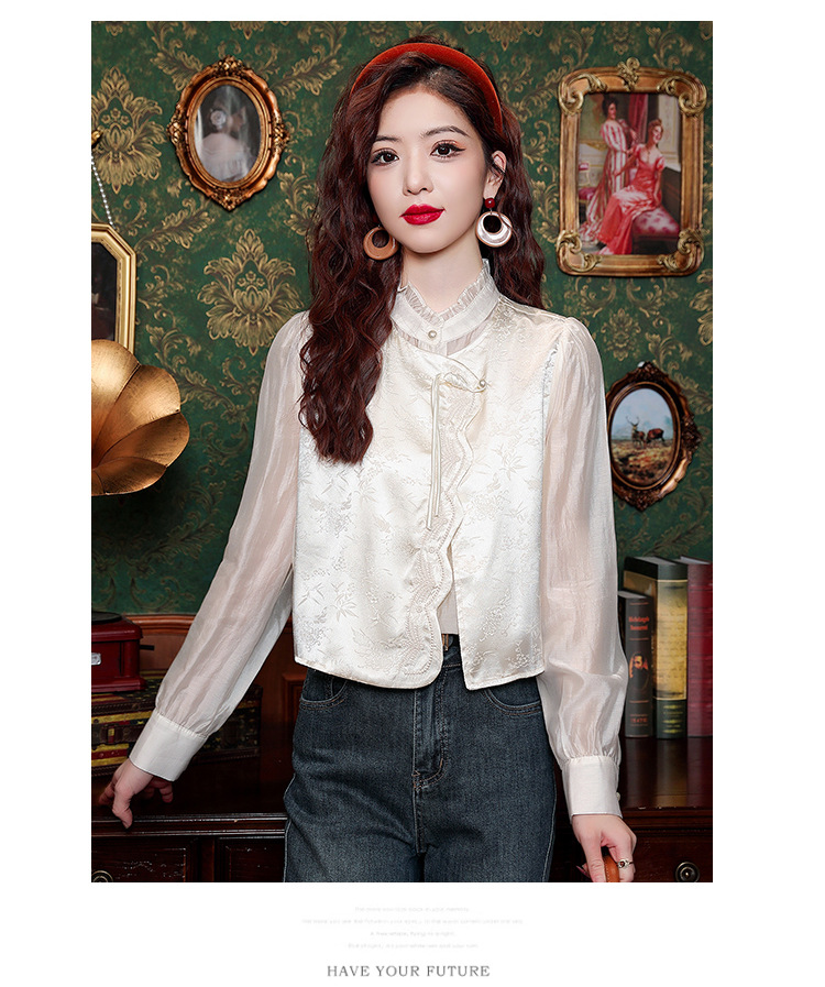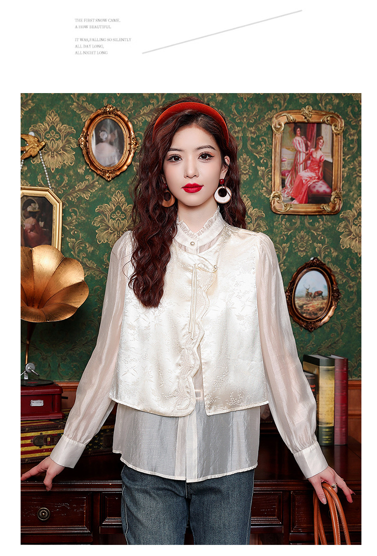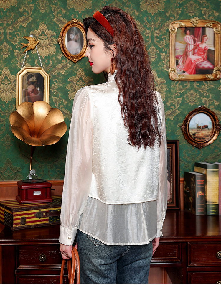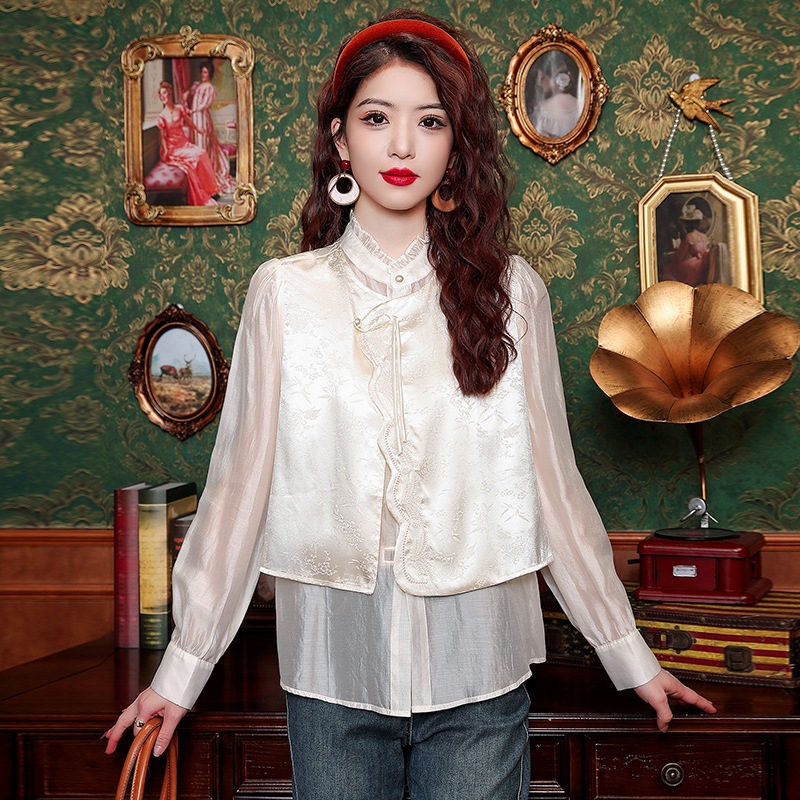 진짜 샷! 2025 봄 새로운 올 매치 달콤한 연꽃 잎 칼라 긴 소매 셔츠 소매 쉬폰 느슨한 유형