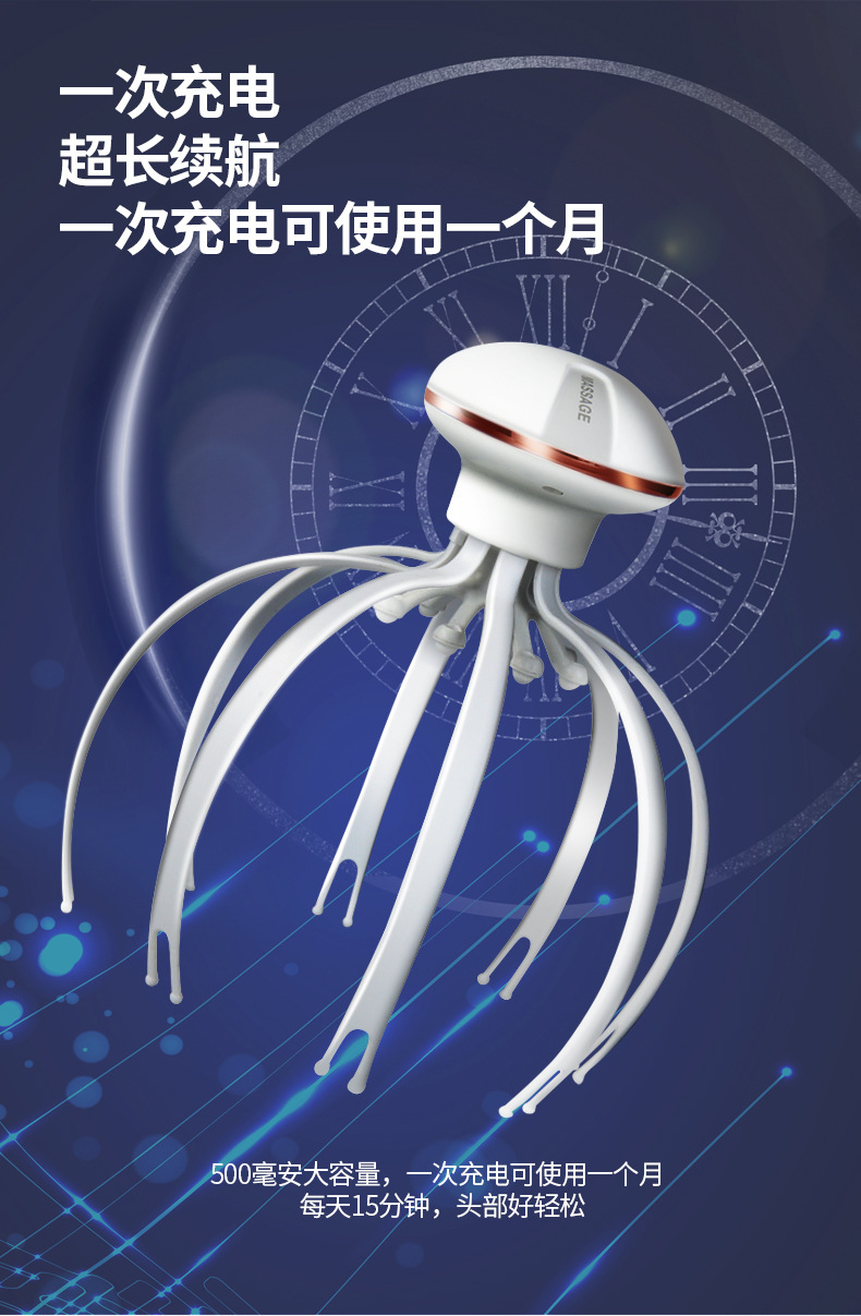 헤드 마사지 전기 충전 문어 머리 마사지 머리 치료 소울 추출기 멀티 클로 크로스 테두리