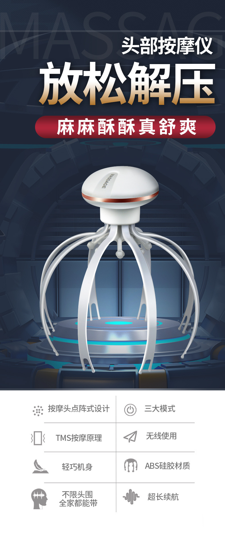 헤드 마사지 전기 충전 문어 머리 마사지 머리 치료 소울 추출기 멀티 클로 크로스 테두리스토어 가기