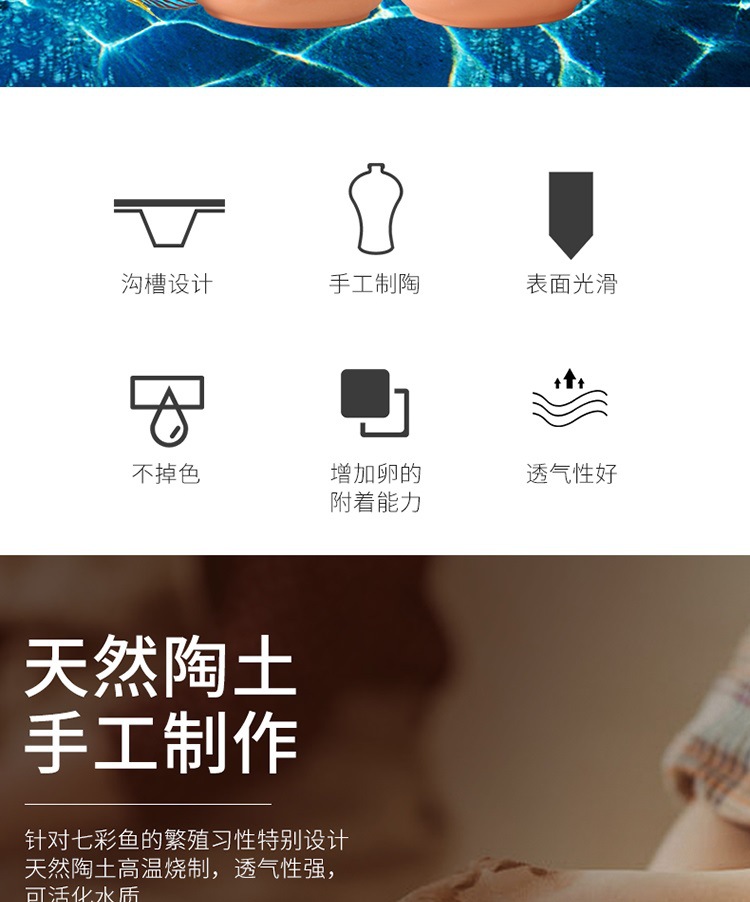 인큐베이터 도자기 냄비 다채로운 물고기 재현 보라색 모래 배럴 산란 그물 커버 배럴 제비 분리 된 산란 냄비