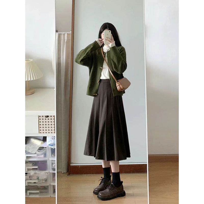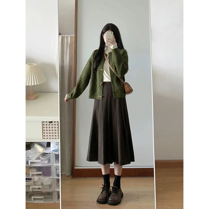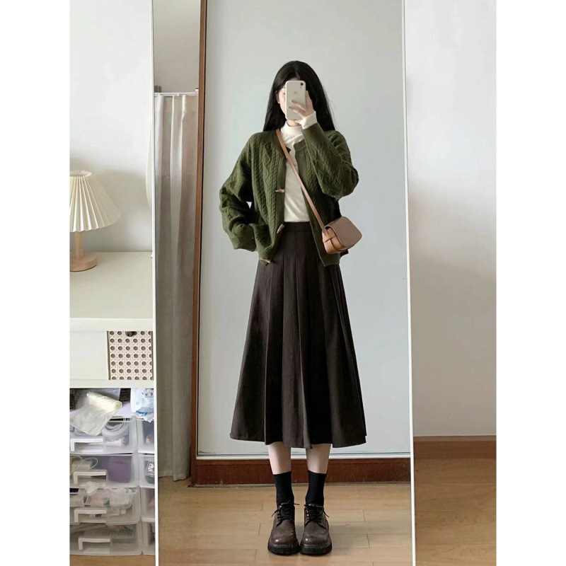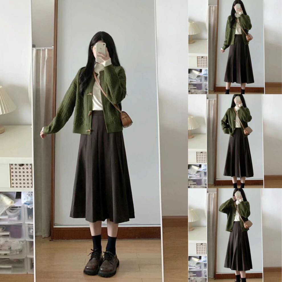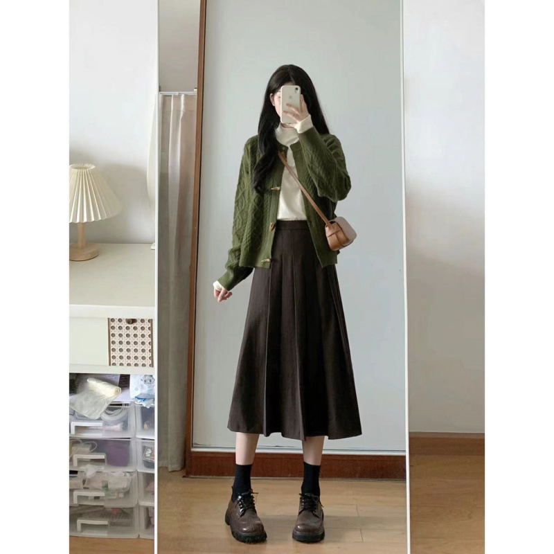가을 의류 세트 차 세트 소금 빛 요리 게으른 스타일 카디건 코트 스커트 투피스 세트 여성스토어 가기