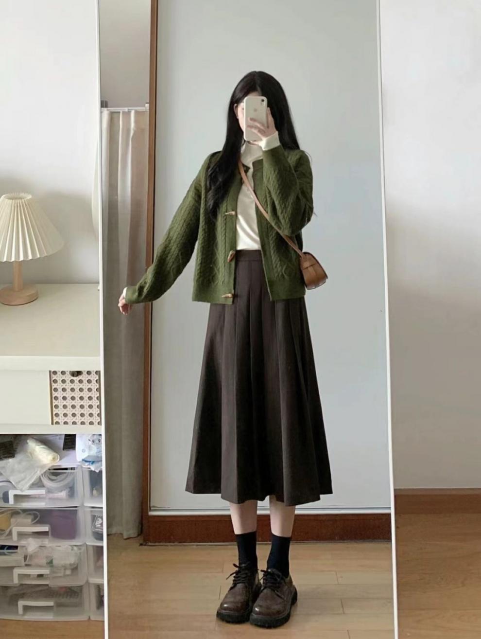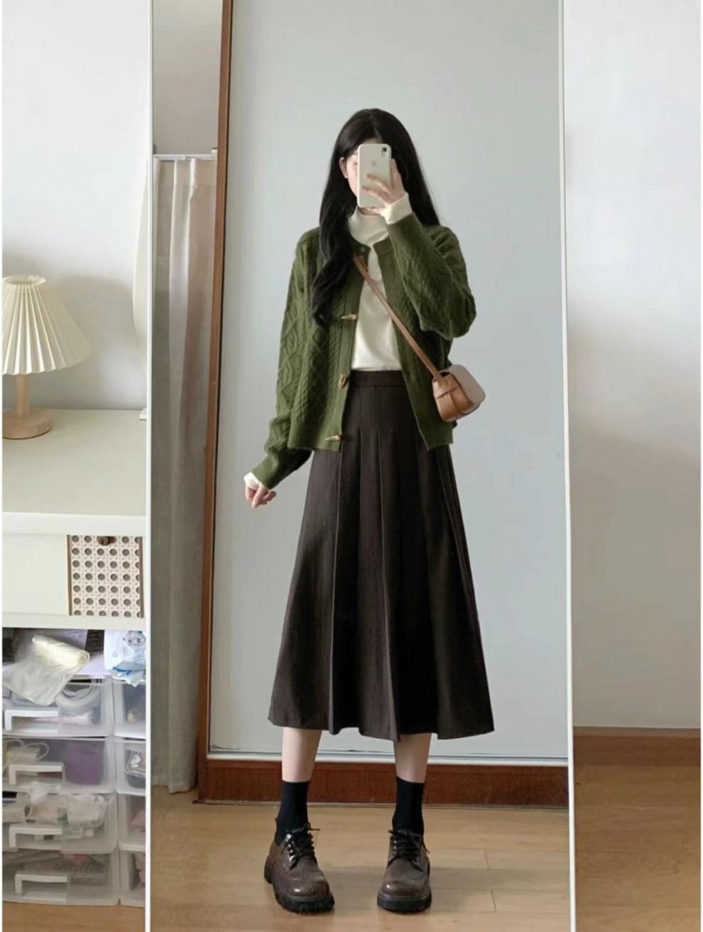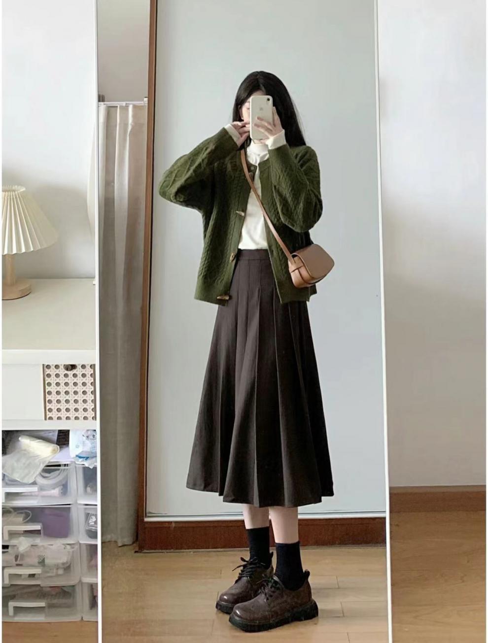가을 의류 세트 차 세트 소금 빛 요리 게으른 스타일 카디건 코트 스커트 투피스 세트 여성스토어 가기