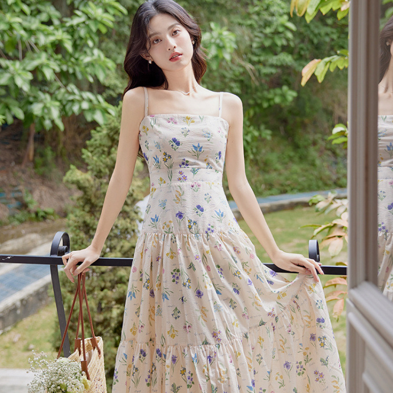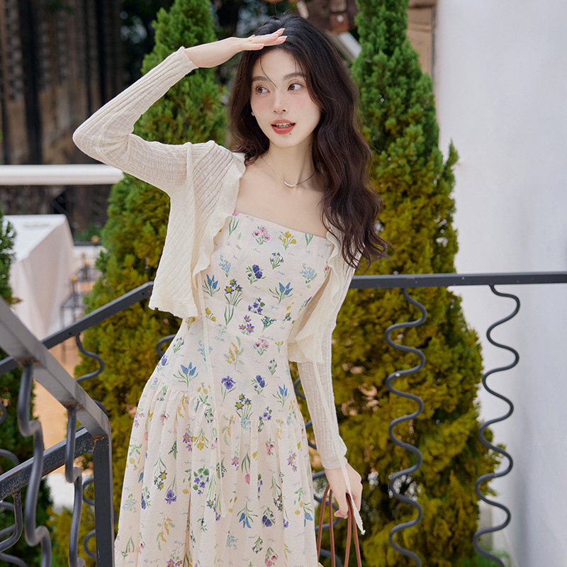 우아하고 슬리밍 슬립 스커트 티 브레이크 프랑스 세련되고 아름다운 차 브레이크 롱 스커트 슈퍼 페어리 해변 분위기 원피스스토어 가기