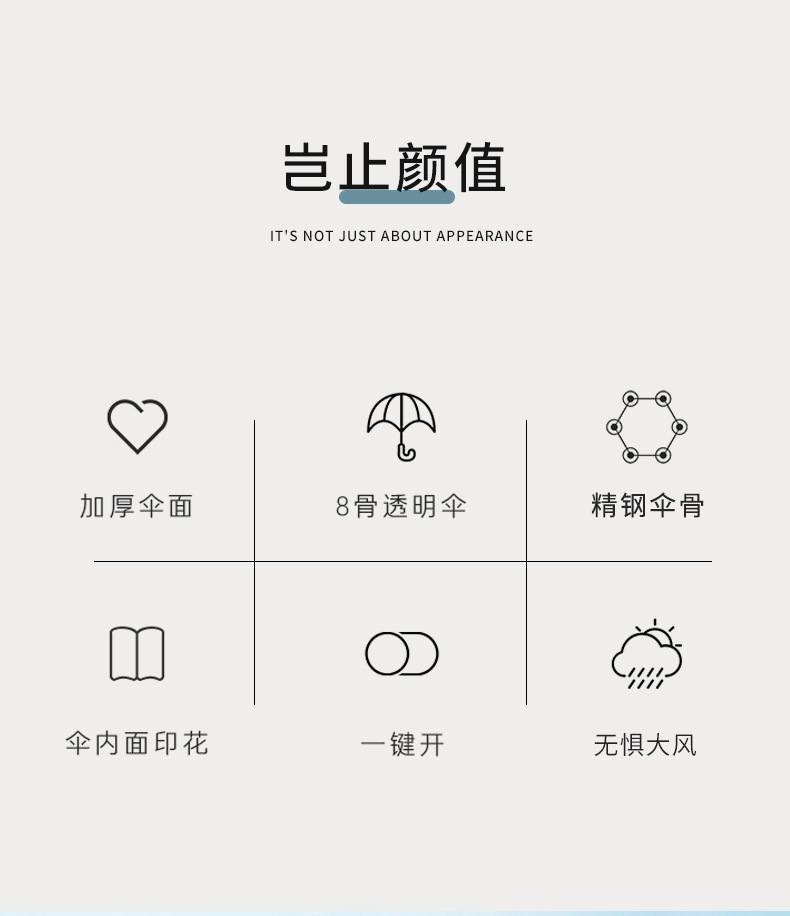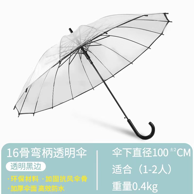 • 16본 블랙 엣지 곡선 핸들 투명 우산