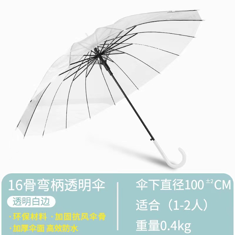 • 16 뼈 흰색 가장자리 곡선 핸들 투명 우산