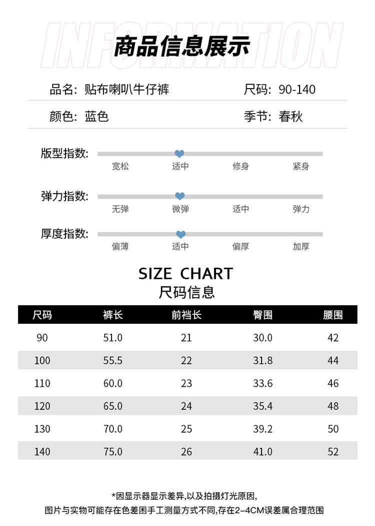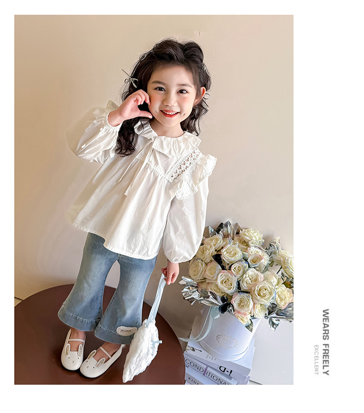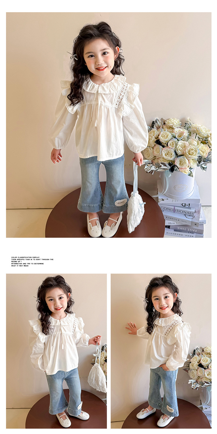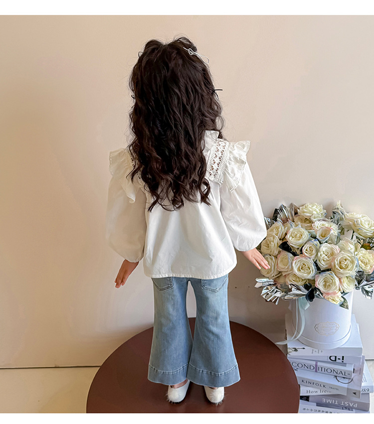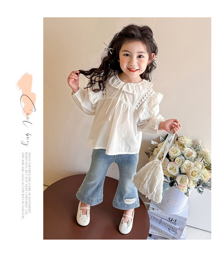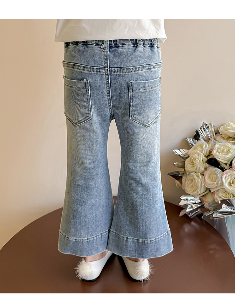 소녀 레이스 라벨링 데님 꽃 무늬 바지 2025 년 봄과 가을 어린 소녀를위한 새로운 패션 바지스토어 가기