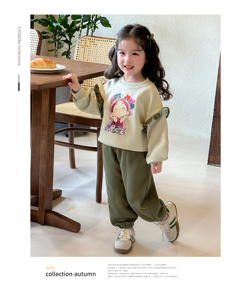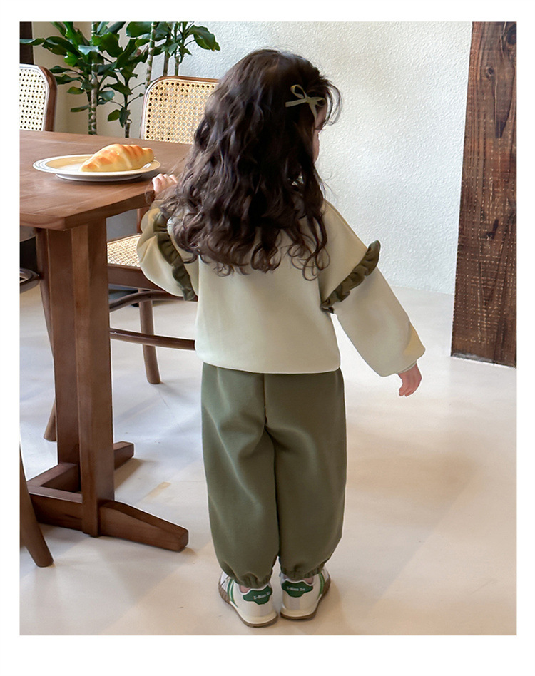 소녀 레이스 슬리브 스웨트 캐주얼 세트 2025 봄과 가을 새로운 어린이 소녀의 달콤하고 서양식 2 피스 세트스토어 가기