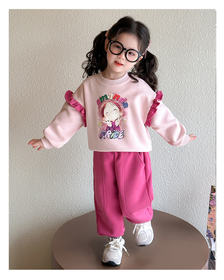 소녀 레이스 슬리브 스웨트 캐주얼 세트 2025 봄과 가을 새로운 어린이 소녀의 달콤하고 서양식 2 피스 세트