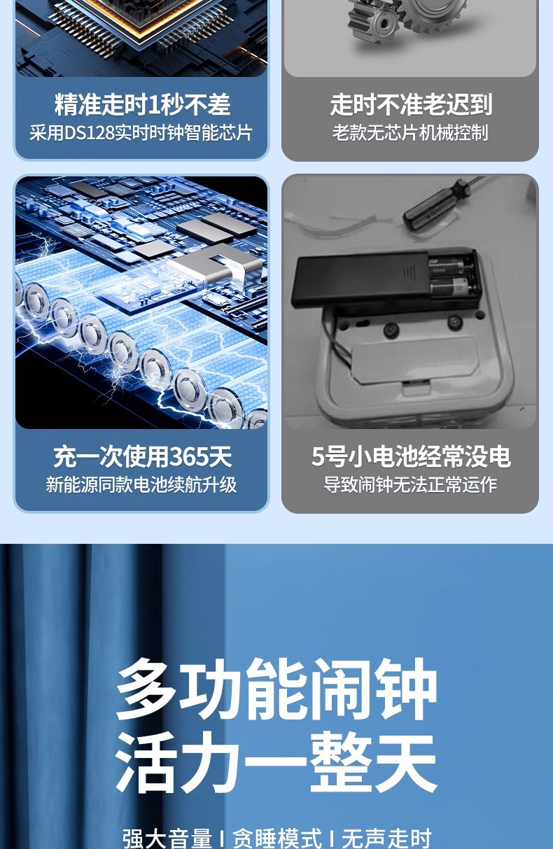 학생들을위한 알람 시계 2025 새로운 스마트 대용량 다기능 아이들을위한 자동 알람 시계 충전