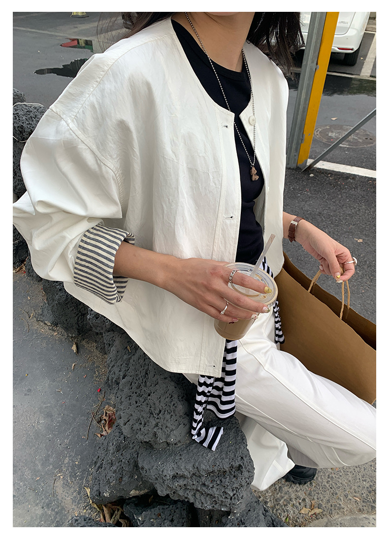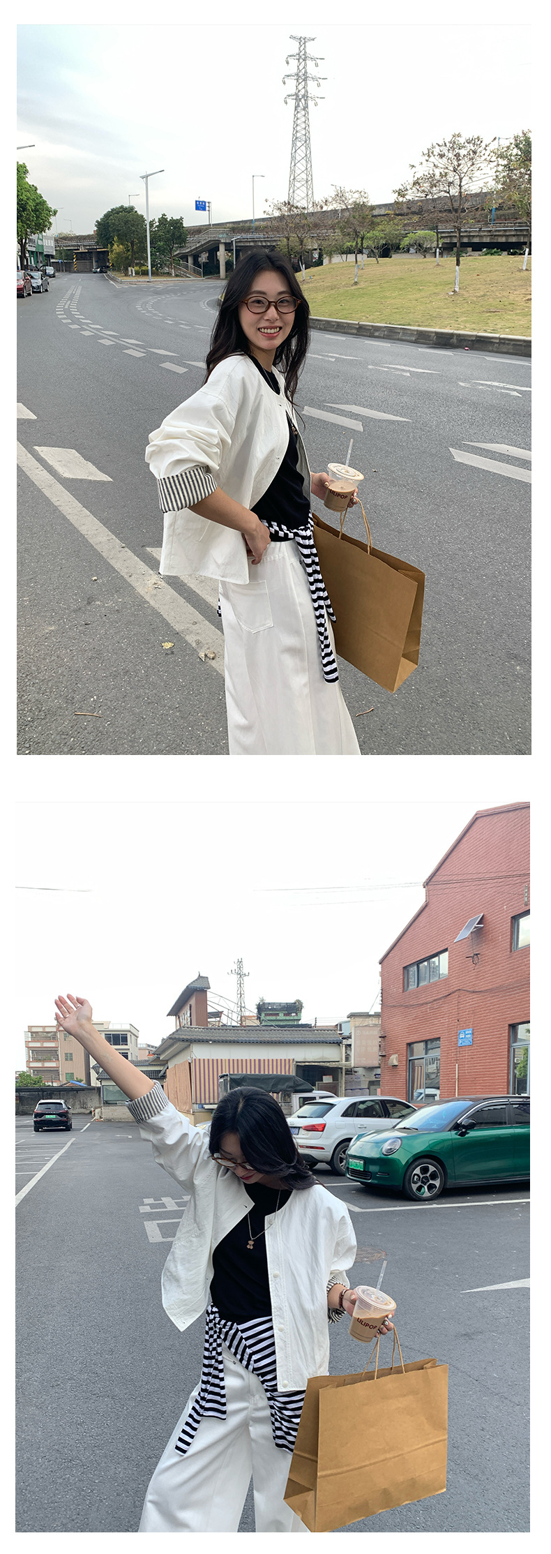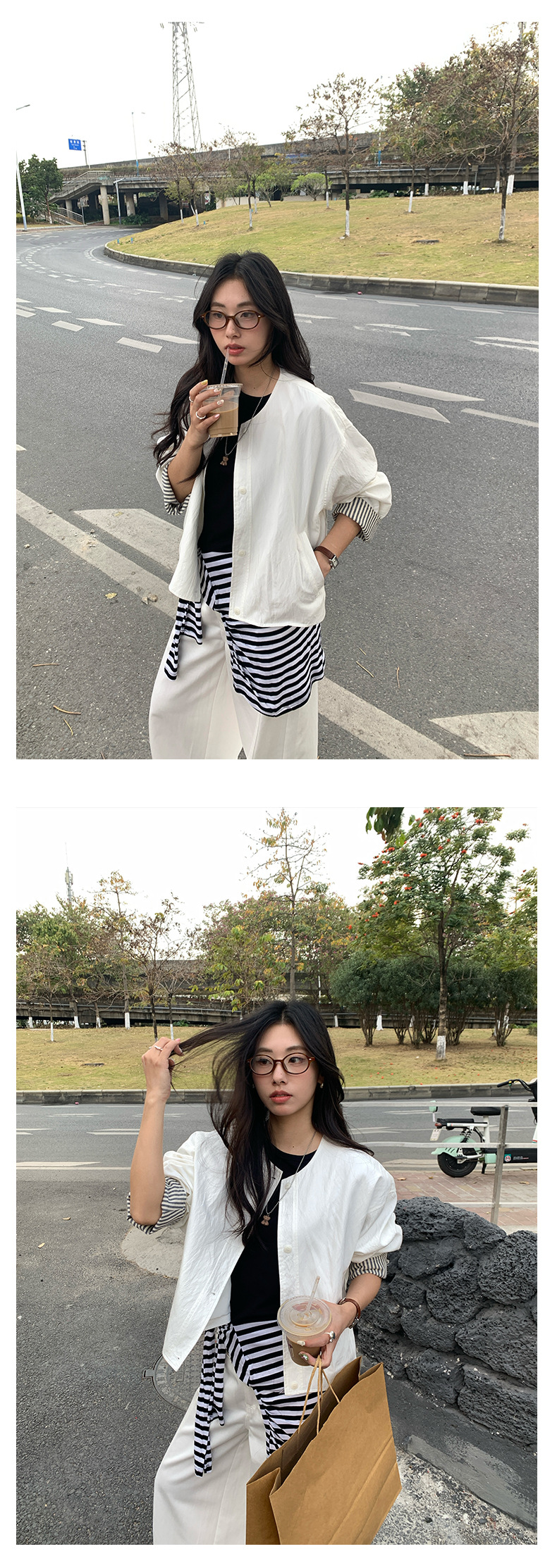 Huang Zheng 한국 스타일 간단한 줄무늬 슬리브 바느질 재킷 코트 여성의 2025 봄 느슨한 캐주얼 탑 H1BB510103