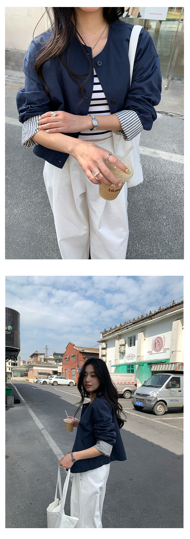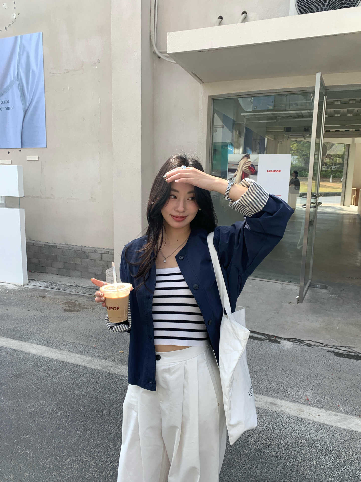 Huang Zheng 한국 스타일 간단한 줄무늬 슬리브 바느질 재킷 코트 여성의 2025 봄 느슨한 캐주얼 탑 H1BB510103스토어 가기