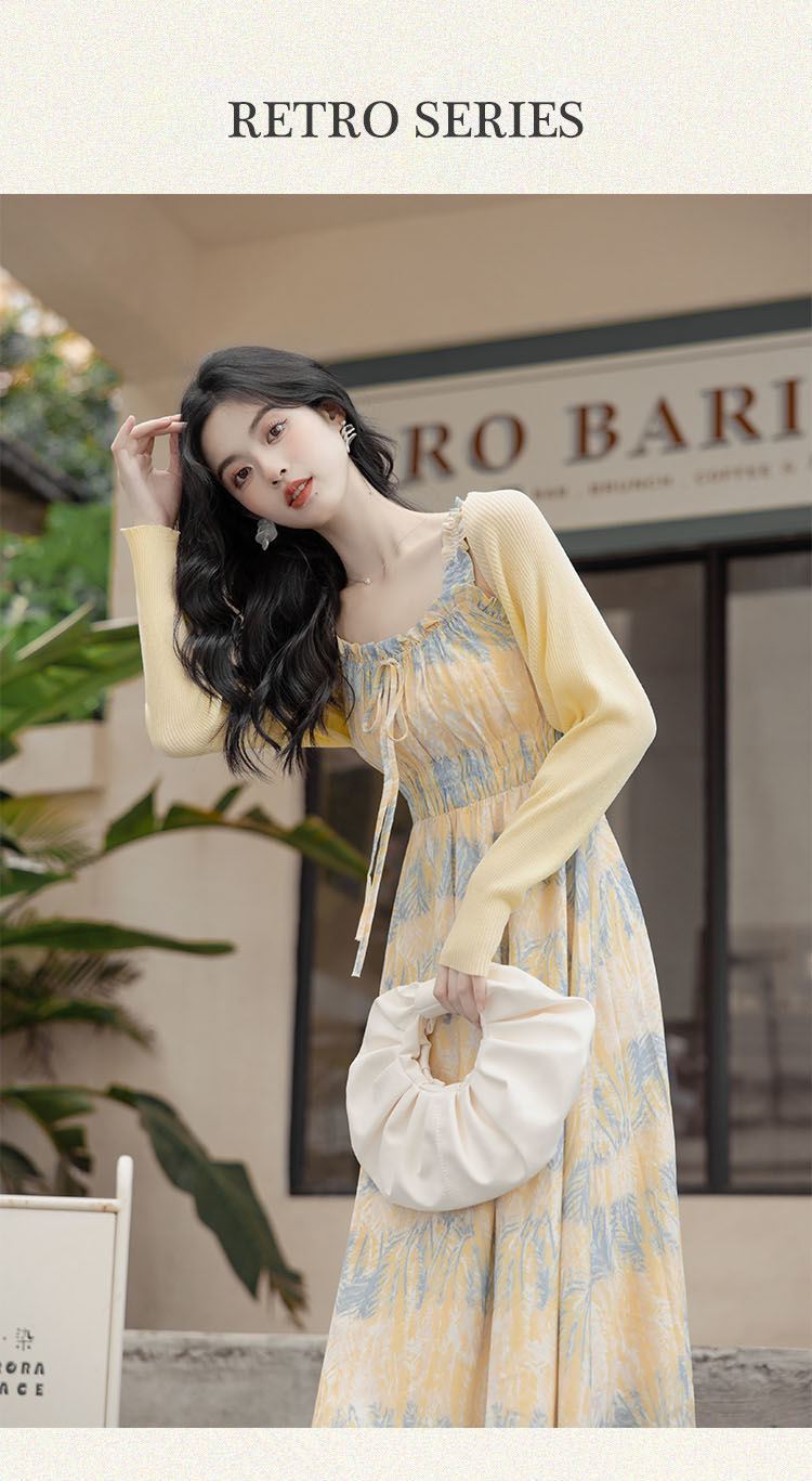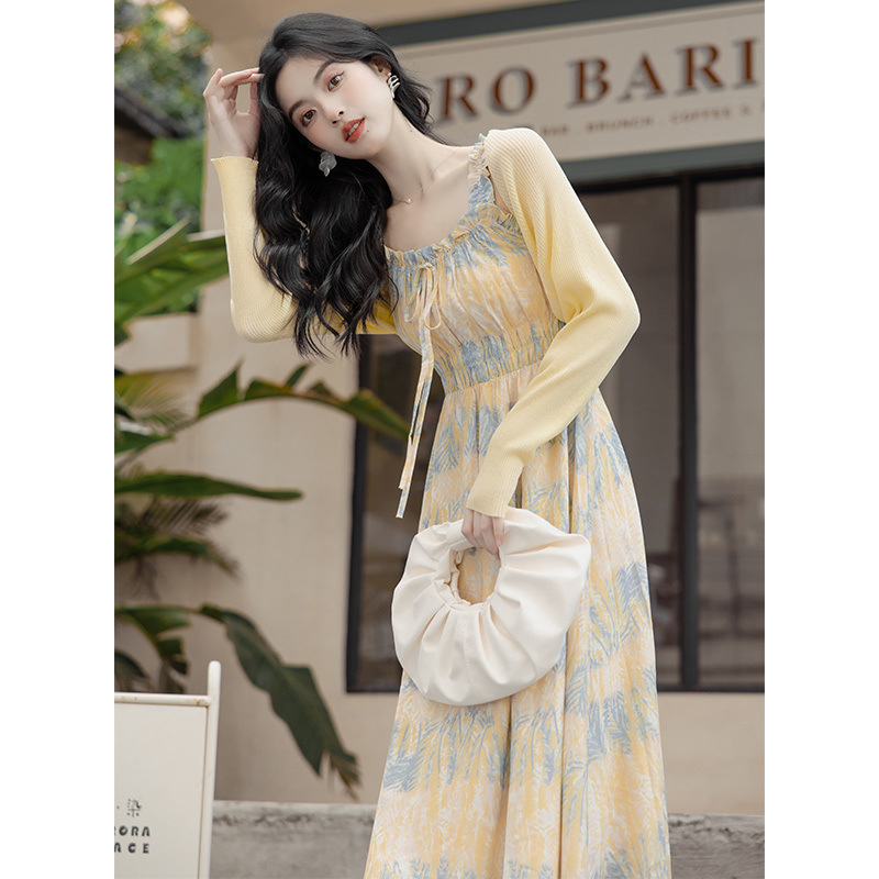 봄과 가을 착용 세트 봄과 여름 새로운 프랑스 스타일 우드 이어 슬링 원피스 외부 블라우스 2 피스 꽃 원피스스토어 가기