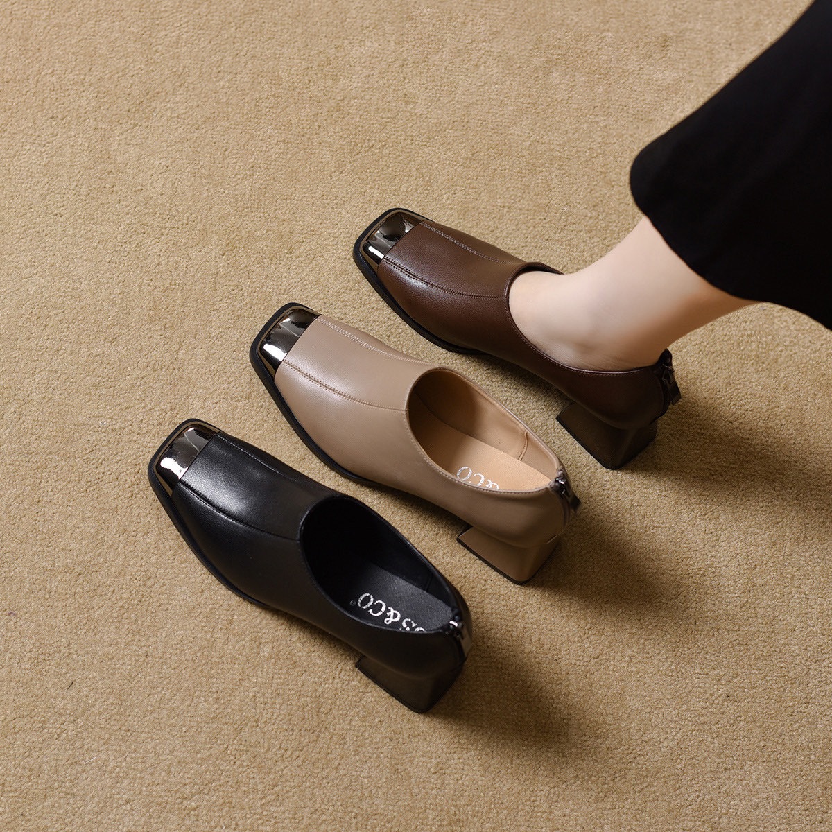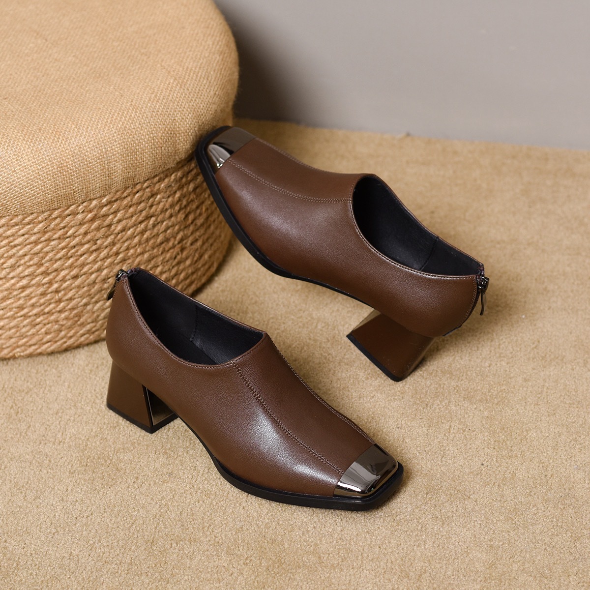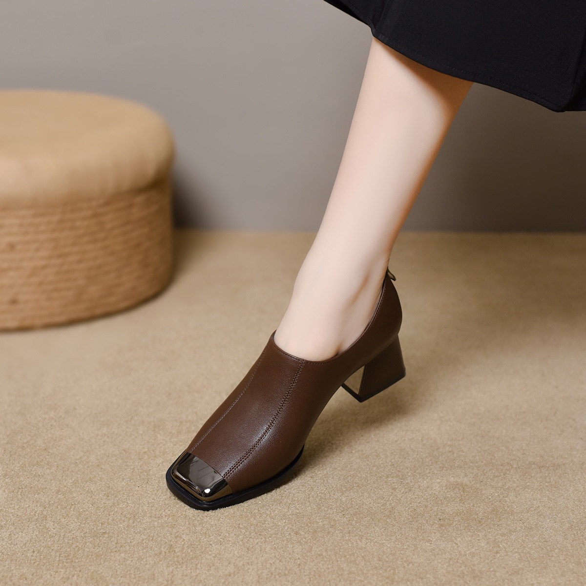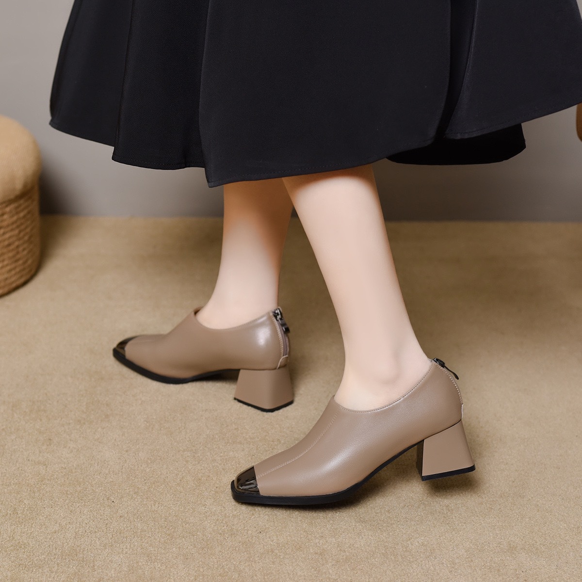 2025 새로운 프랑스 스타일 스퀘어 토 봄과 가을 패션 올 매치 레트로 딥 입 싱글 레이어 신발 여성 영국 스타일 청키 힐 양가죽 신발스토어 가기