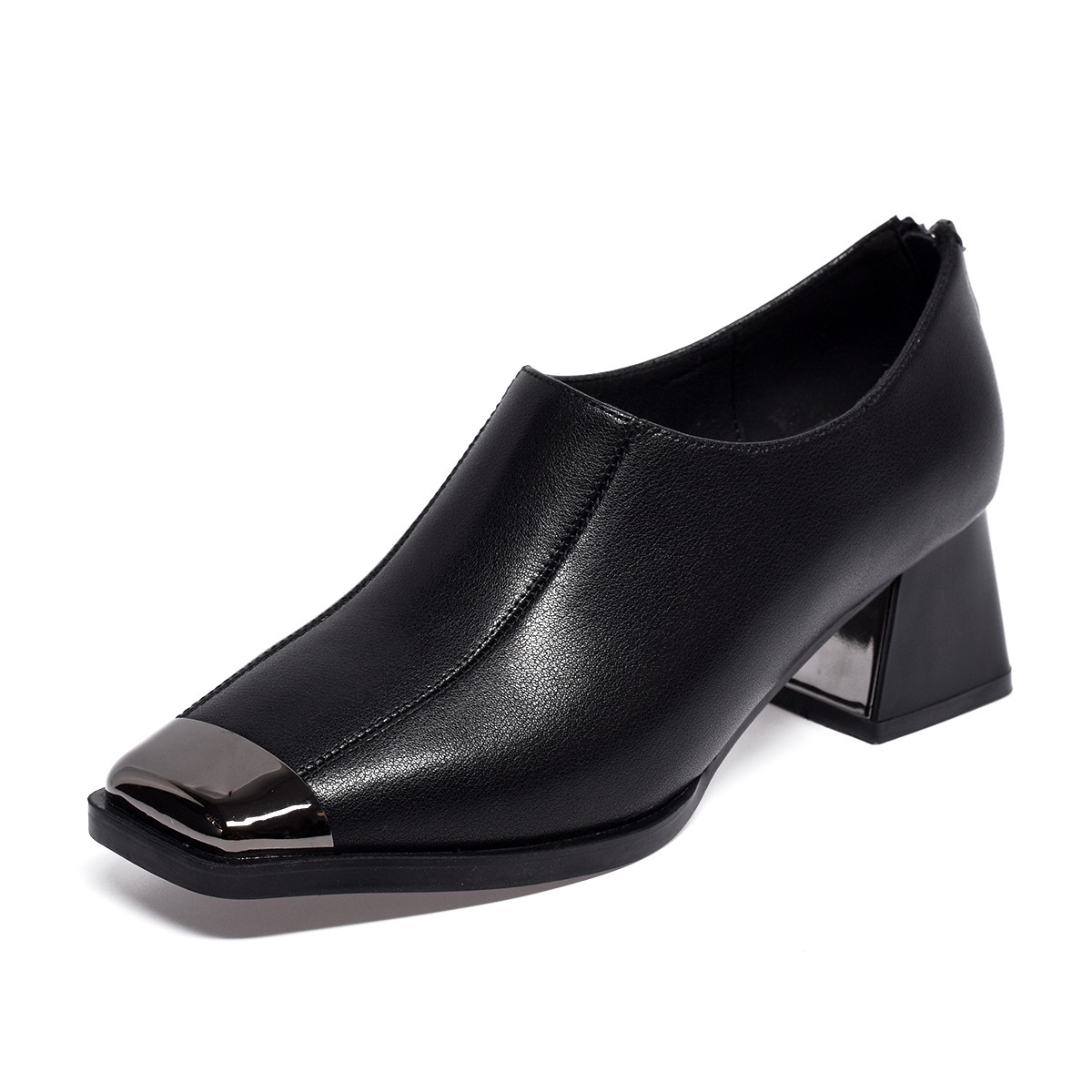 2025 새로운 프랑스 스타일 스퀘어 토 봄과 가을 패션 올 매치 레트로 딥 입 싱글 레이어 신발 여성 영국 스타일 청키 힐 양가죽 신발