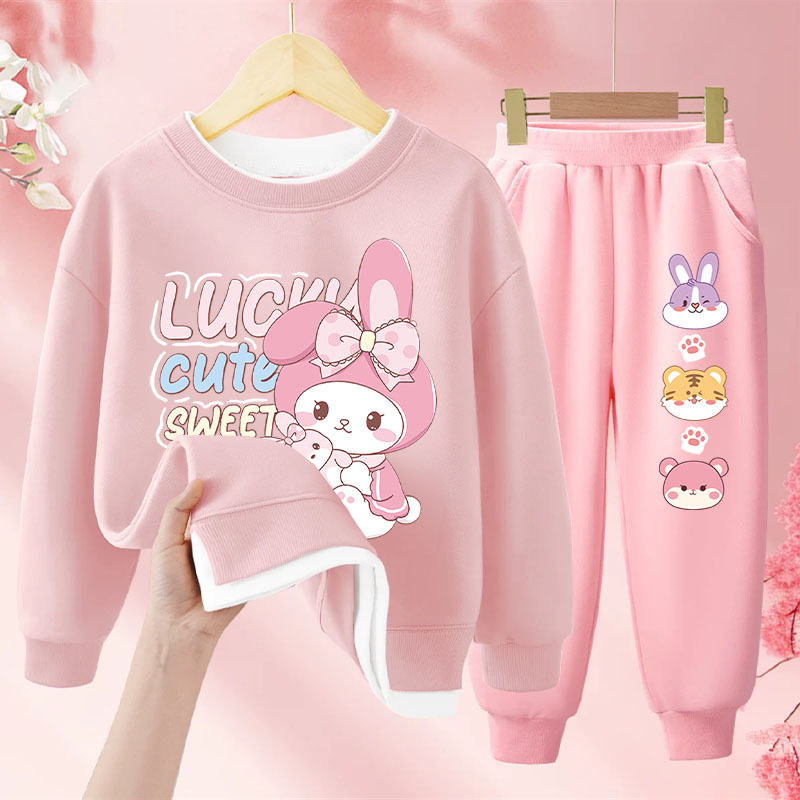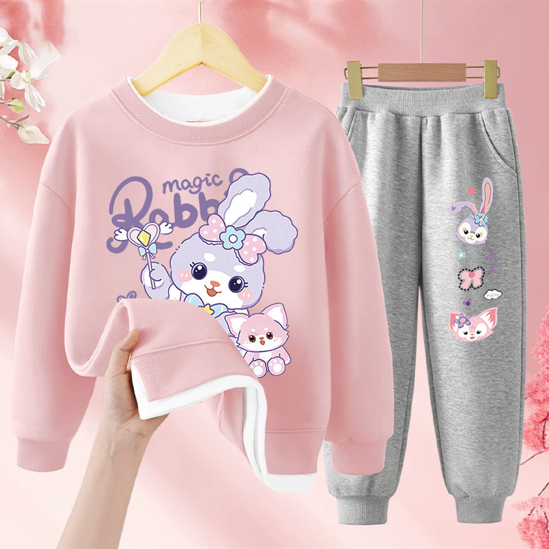 • 페이크 투피스 봄옷/여우토끼 핑크옷 + 여우토끼 그레이팬츠