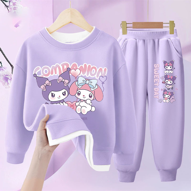 • 페이크 투피스 봄옷/행운의 고양이 보라색 옷 + 네 마리의 고양이 보라색 바지