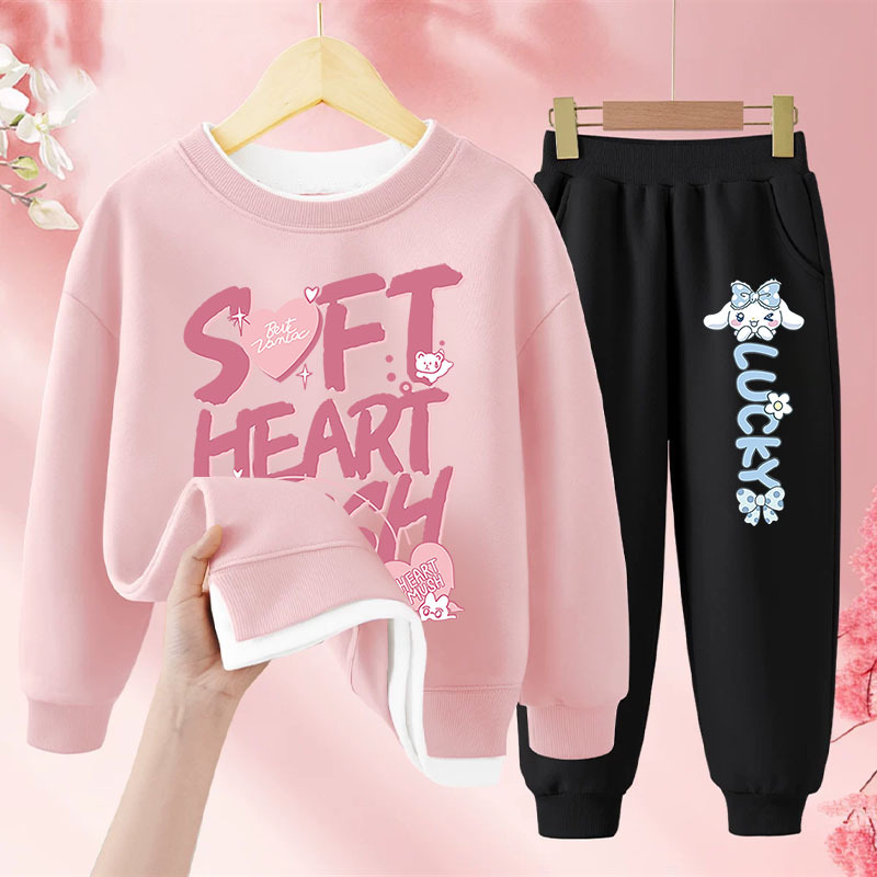 • 페이크 투피스 봄옷/하트 소프트 핑크 코트 + 토끼, 고양이, 검은 바지