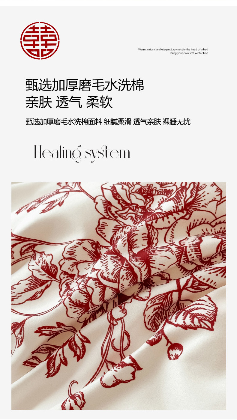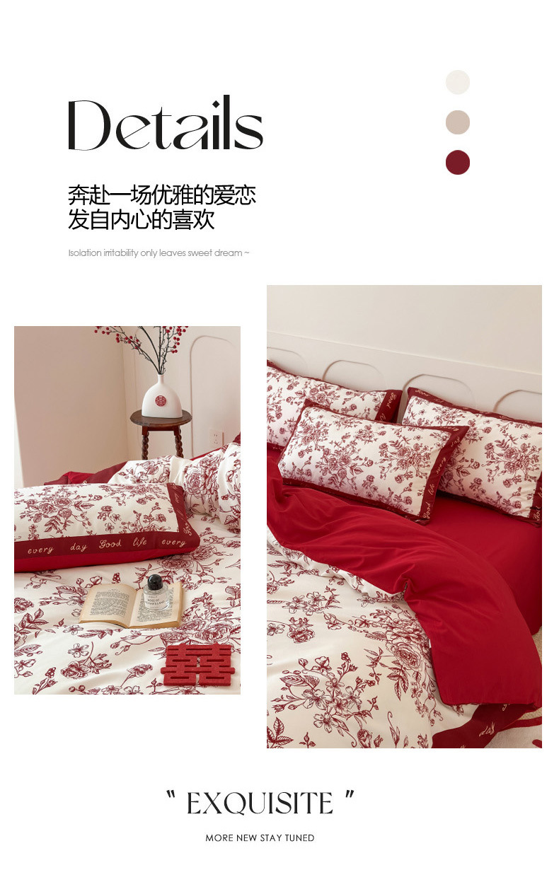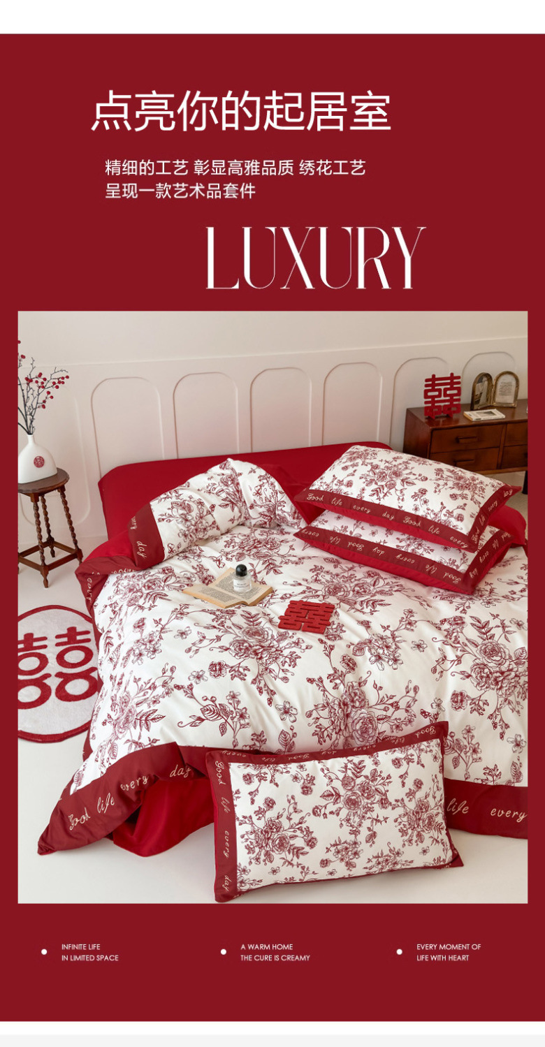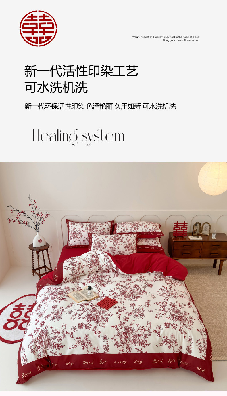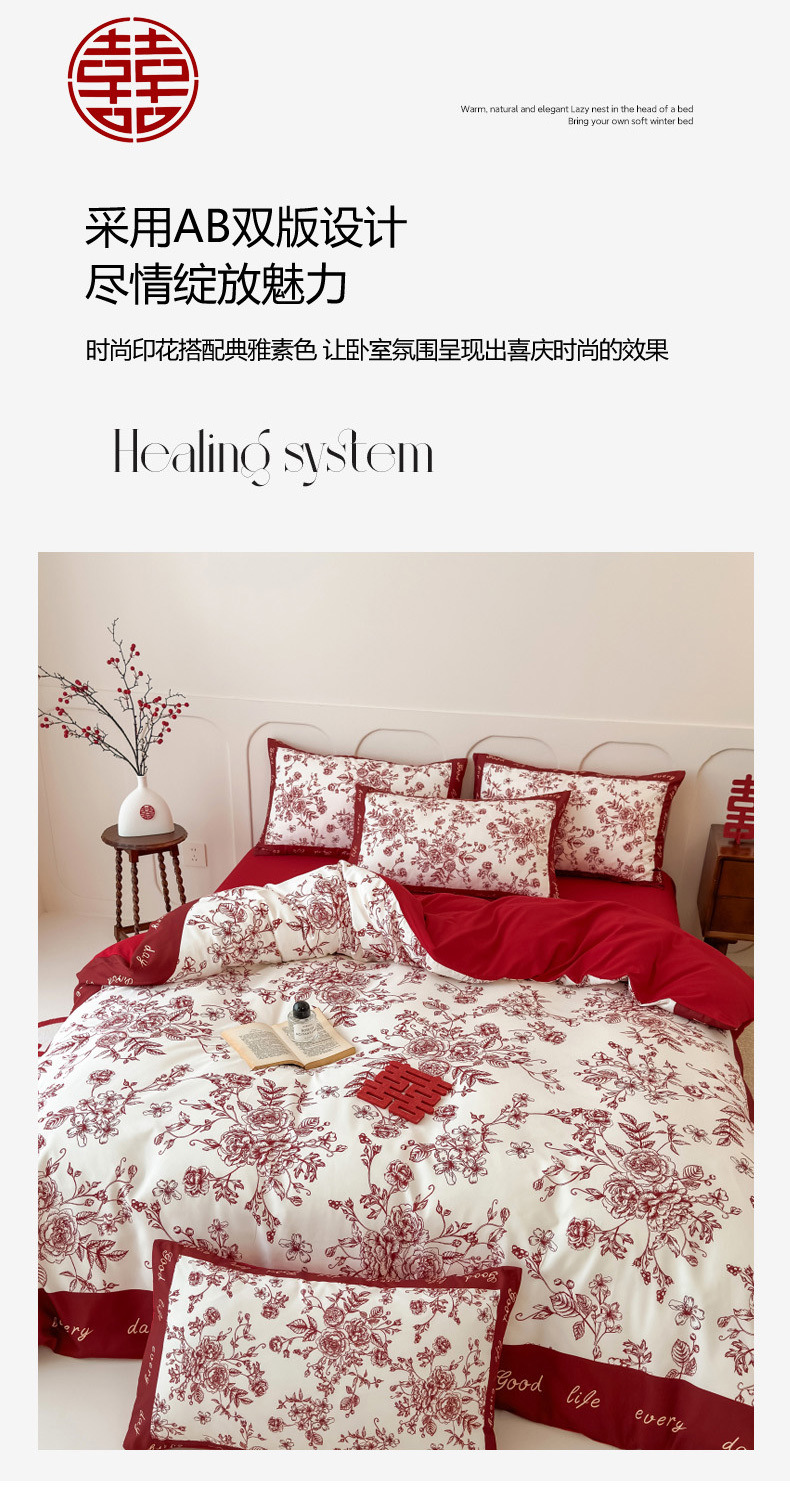간단한 결혼식 현대 결혼식 4 조각 빨간 침대 시트 인쇄 된 퀼트 커버 웨딩 코튼 침구 결혼식 동반스토어 가기