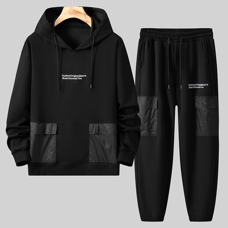 2025 새로운 플러스 사이즈 후드 스웨터 세트 남성 가을 새로운 뚱뚱한 긴 소매 후드 스웨터 바지 청소년 가을 의류