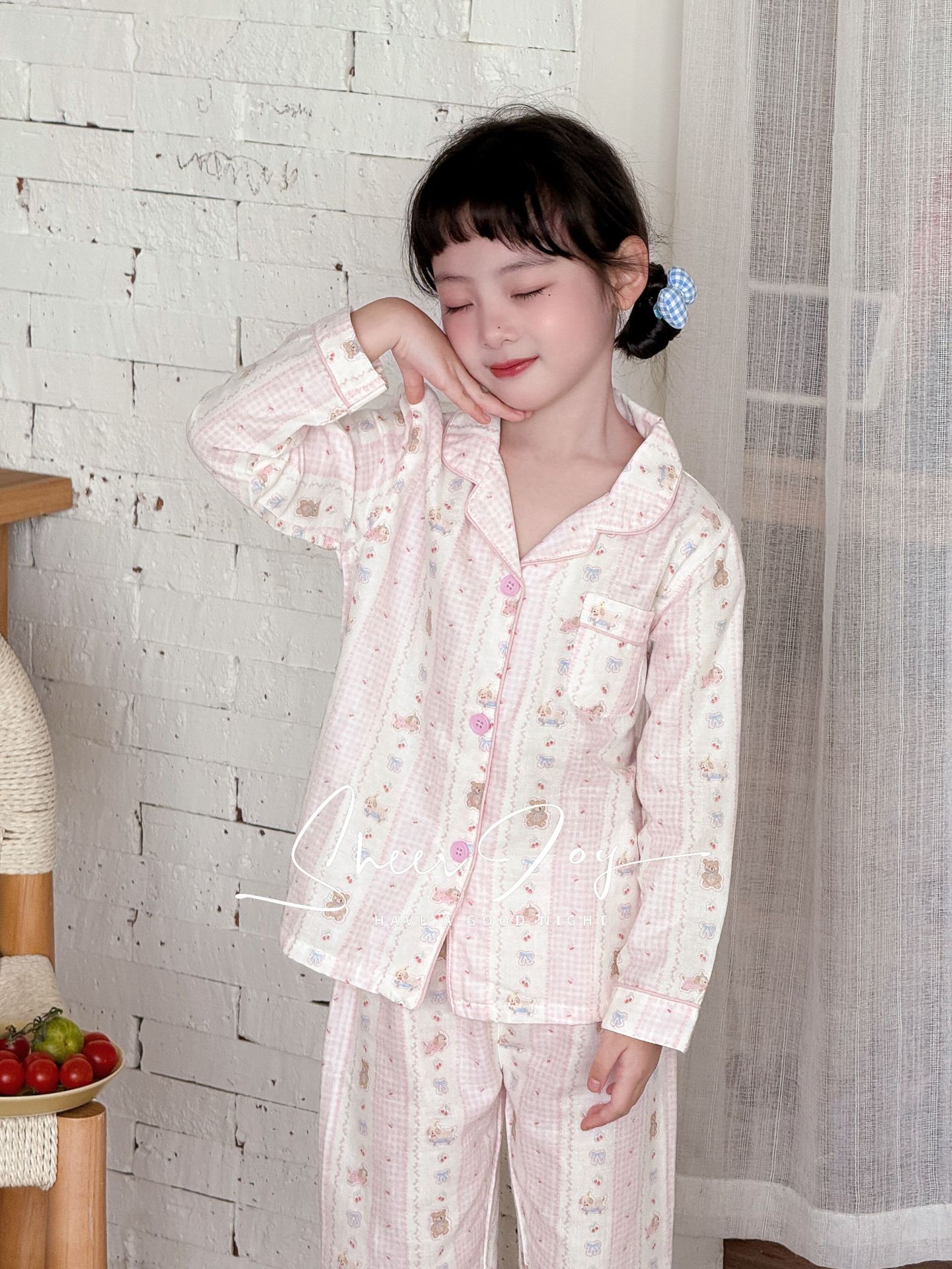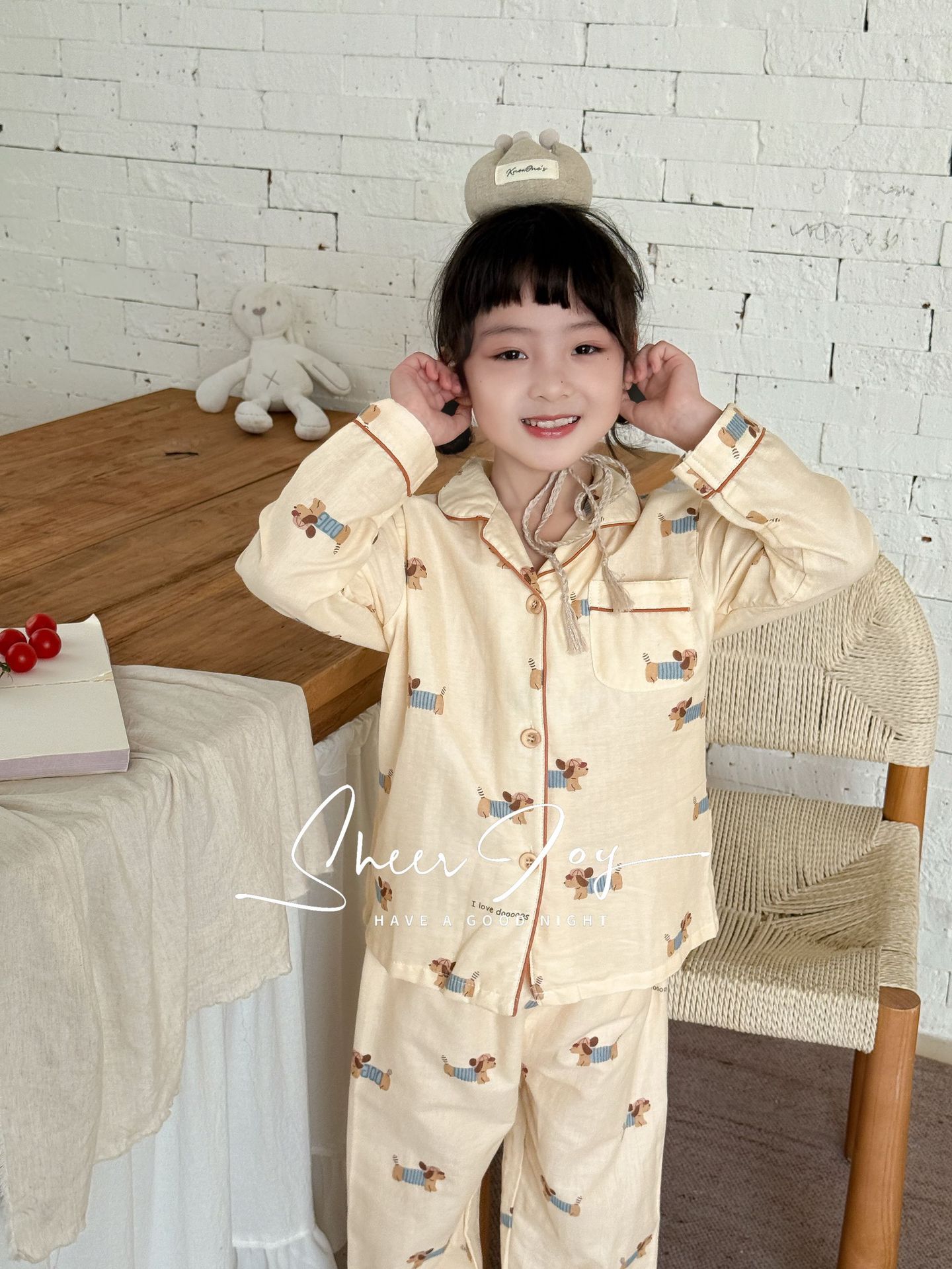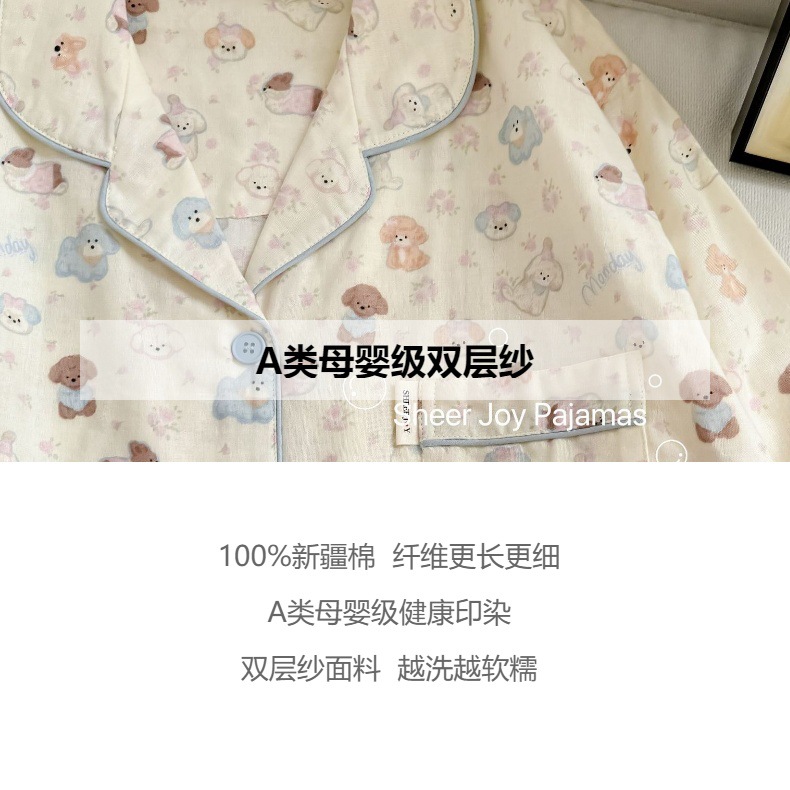 더블 레이어 원사 임베디드 용어 부모-아이 긴팔 바지 홈 옷 여자 세트 케이크 강아지