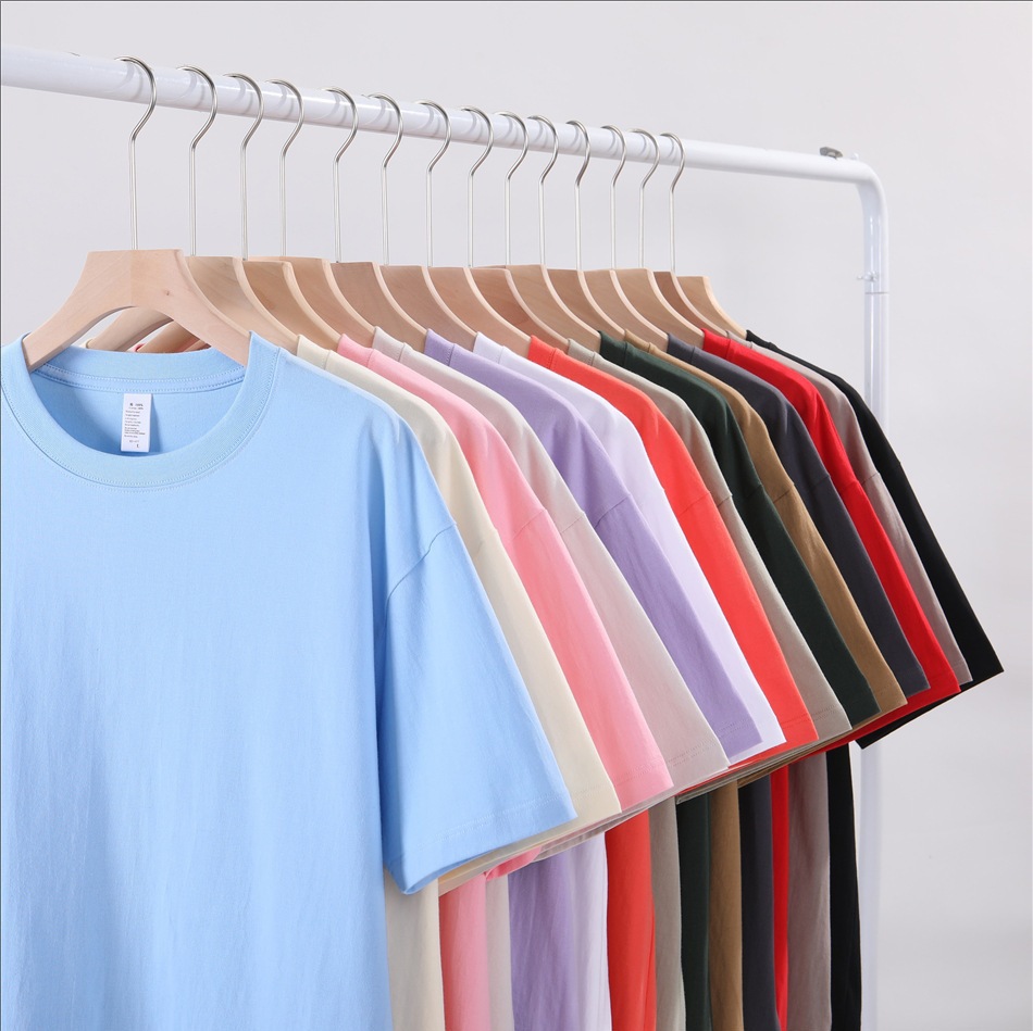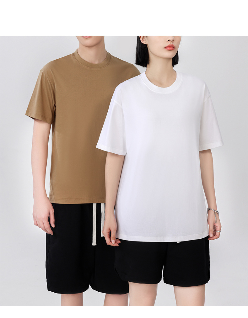230g 무거운 신장면 반팔 티셔츠 남성용 느슨한 어깨 화이트 T 여름 솔리드 컬러 라운드 넥 퓨어 화이트 티셔츠 남성용스토어 가기