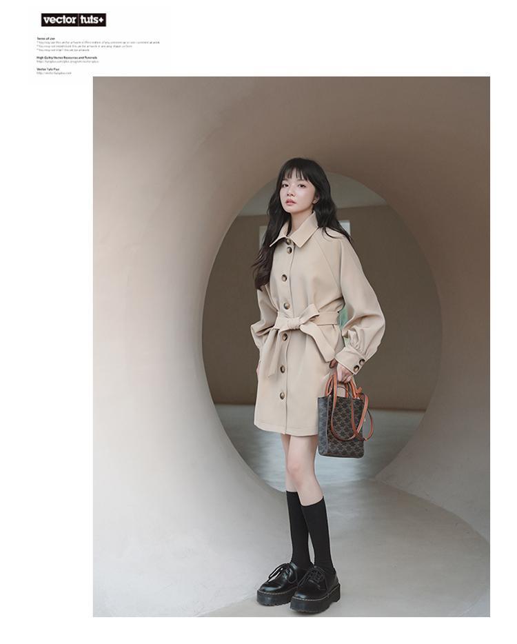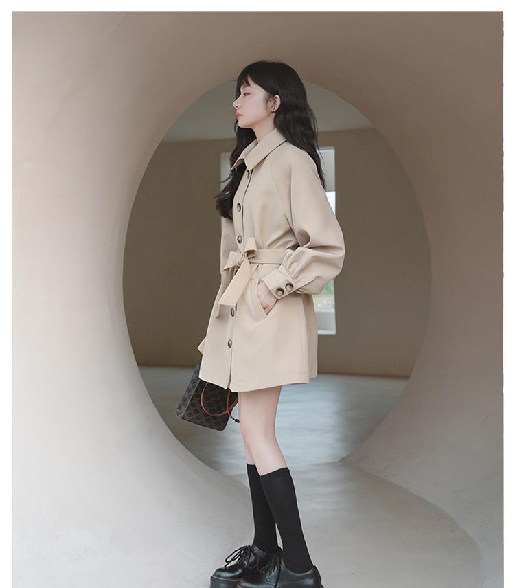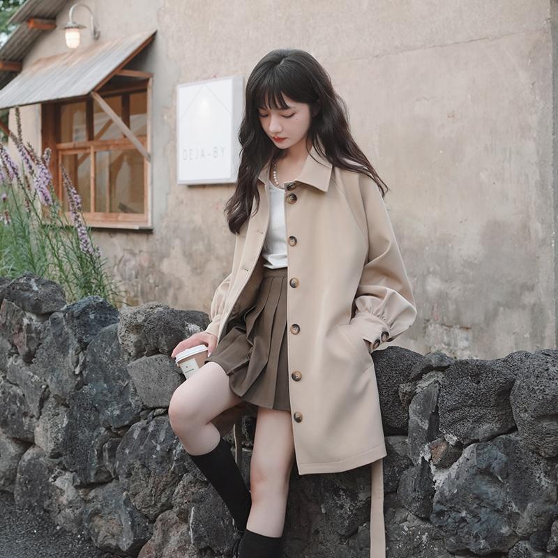 푸른 바다 Yinuo 2025 봄과 가을 새로운 올해의 기질 인기 작은 짧은 허리 하이 엔드 카키 스타일스토어 가기