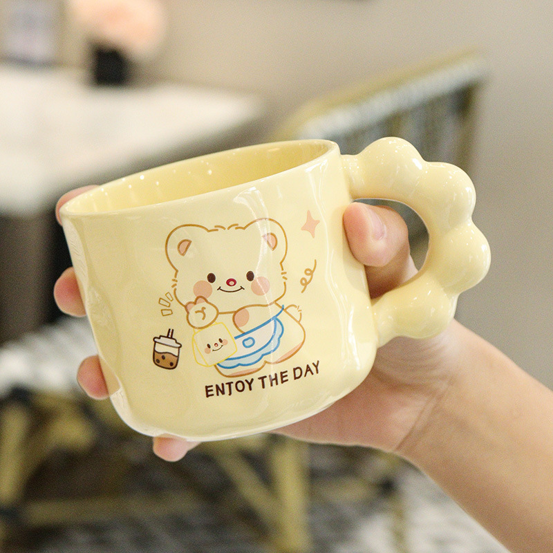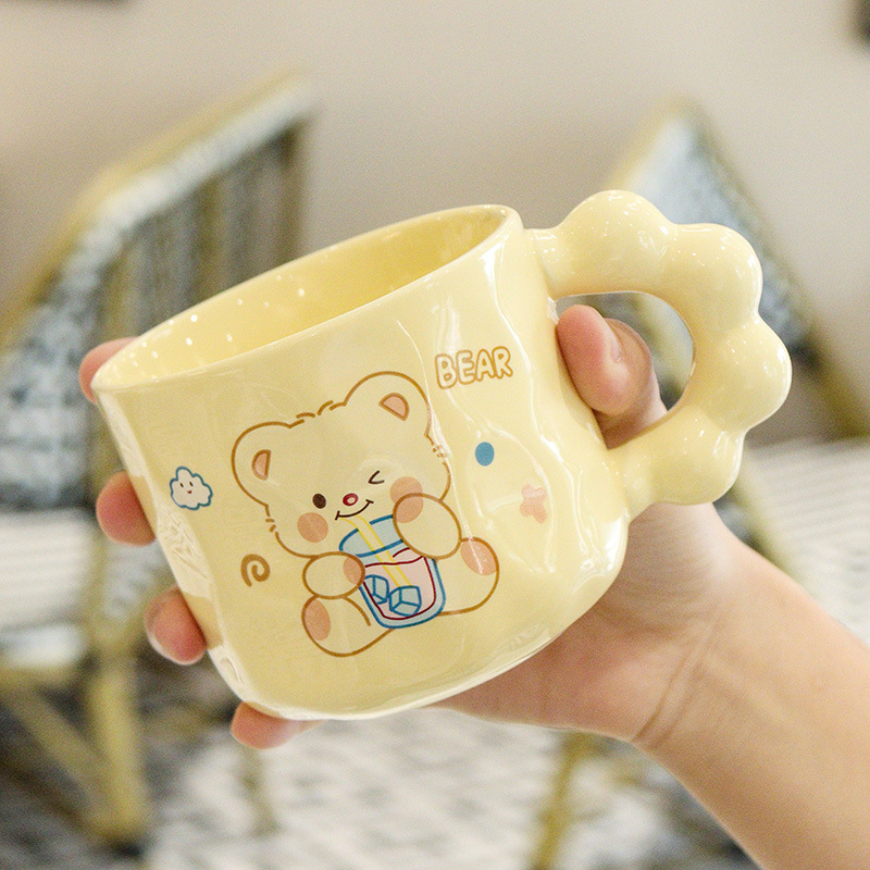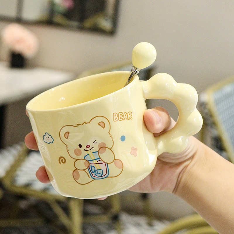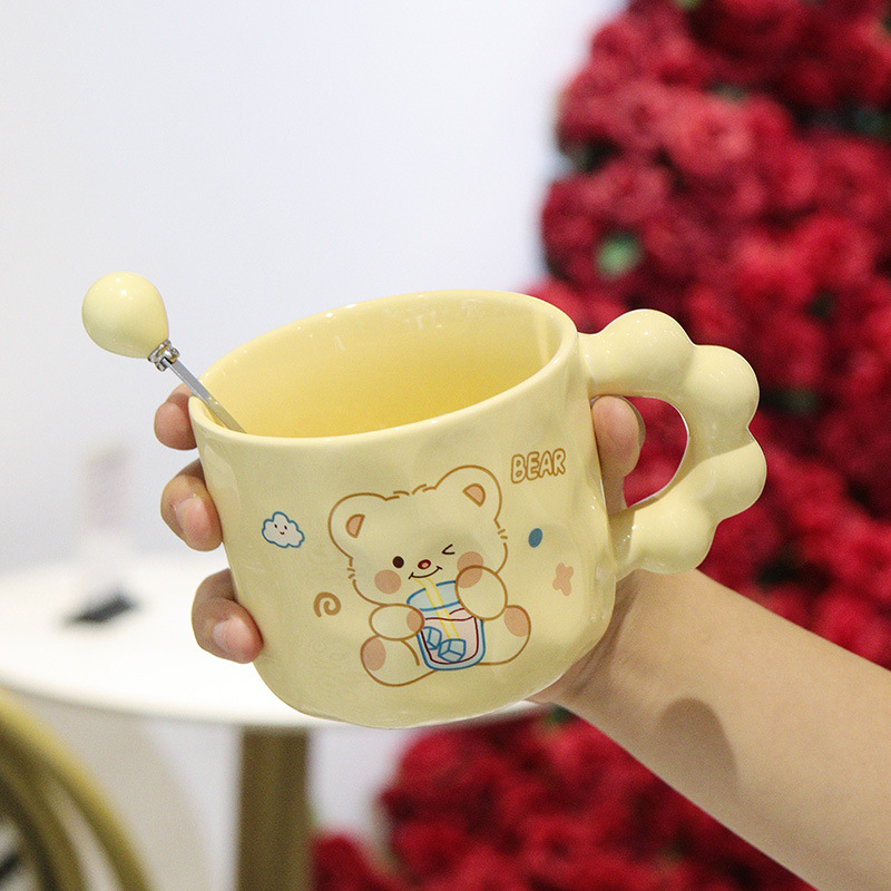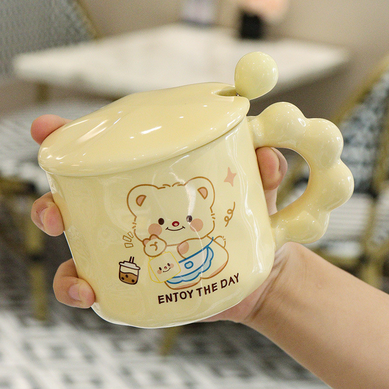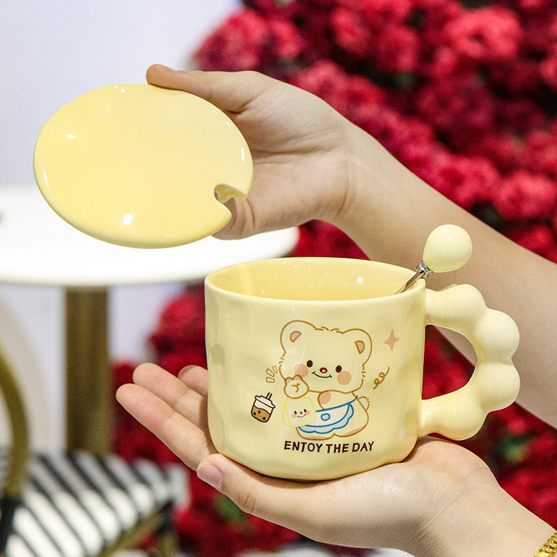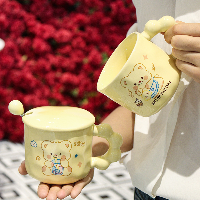 곰돌이 머그컵, 예쁜 기념품, 실용적인 선물, 뚜껑과 스푼이 있는 컵, 세라믹 컵, 선물세트, 물컵스토어 가기